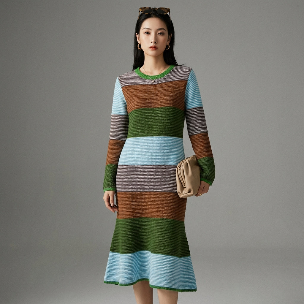 Kreieren Sie einen modernen und raffinierten Look mit unserem zweifarbigen Strickkleid, perfekt für alle Gelegenheiten. Der Rundhalsausschnitt und die langen Ärmel bieten optimalen Komfort, während die hohe Taille eine elegante und lässige Silhouette betont! ✨