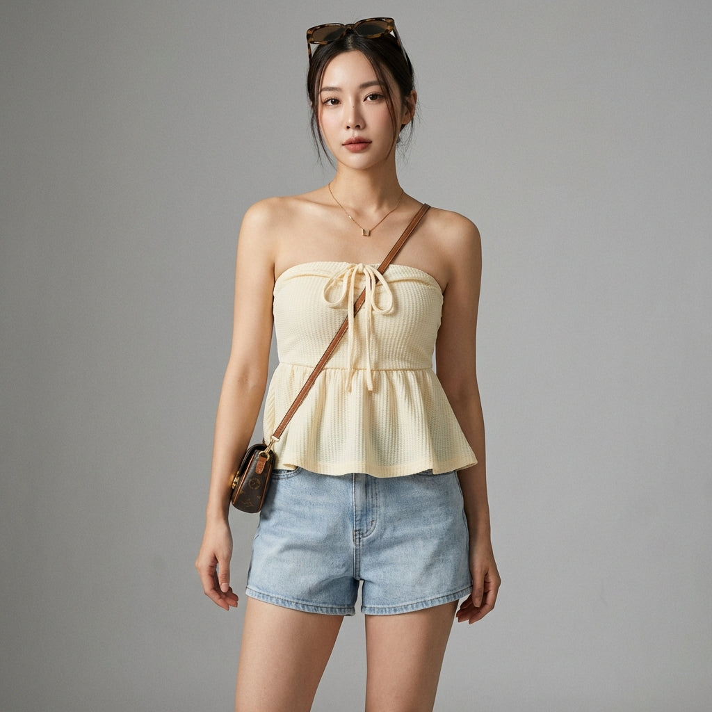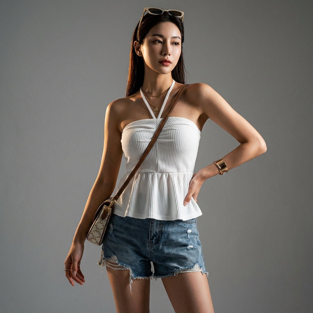 - Stil: Koreanische Mode, Streetwear, Sommerlich, Gewagt. Dieses Top verkörpert den jungen und dynamischen Geist der K-Fashion, perfekt für einen lässigen oder selbstbewussteren Look.