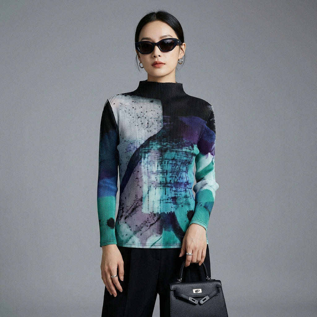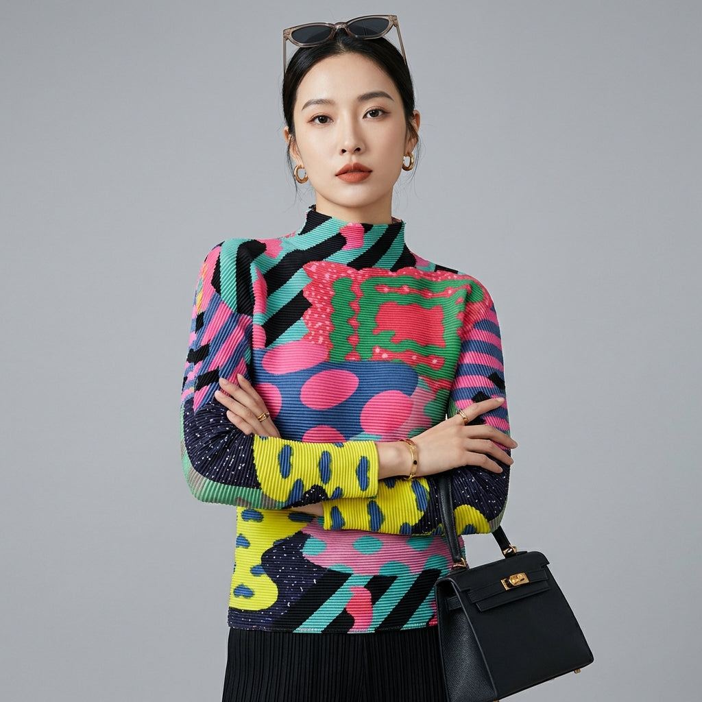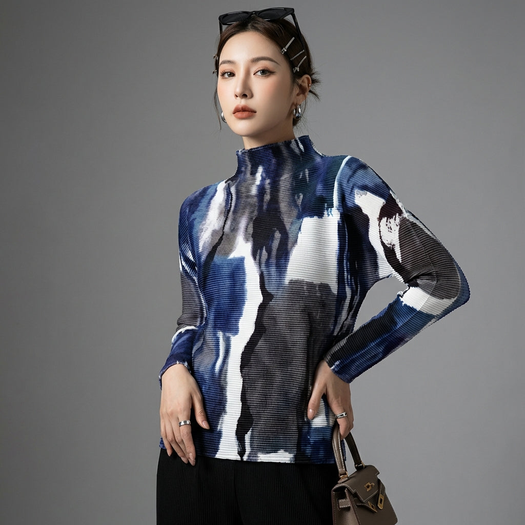 Entdecken Sie unsere trendige Plissee-Bluse, perfekt für einen eleganten und modernen Look. Mit ihrem einzigartigen Print und dem halbhohen Kragen bietet sie eine schlanke Silhouette und einen vielseitigen Stil. Ideal zum beidseitigen Tragen, passt sie sich all Ihren Wünschen an! ✨