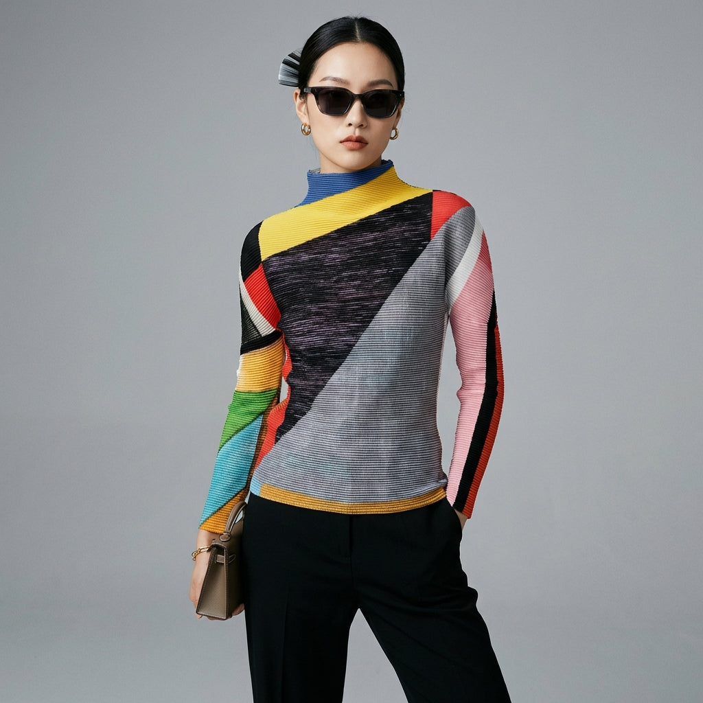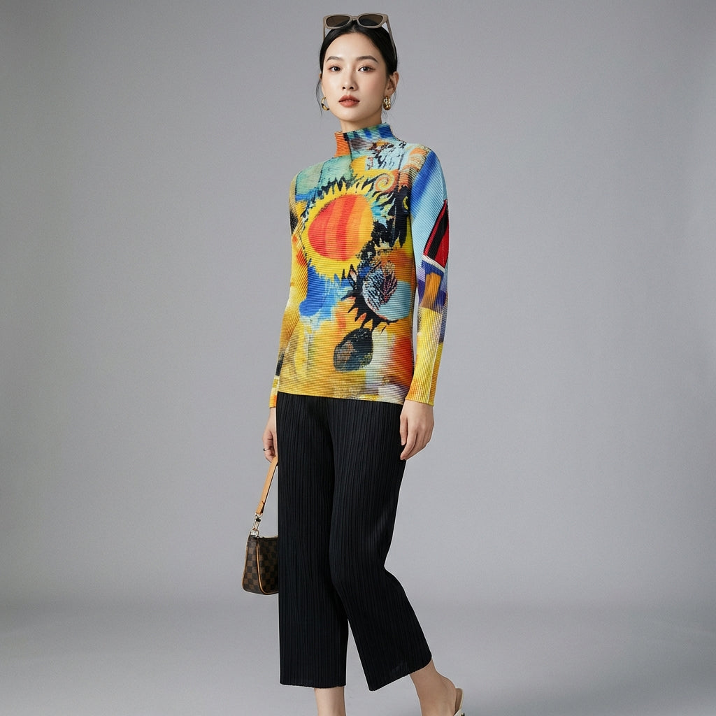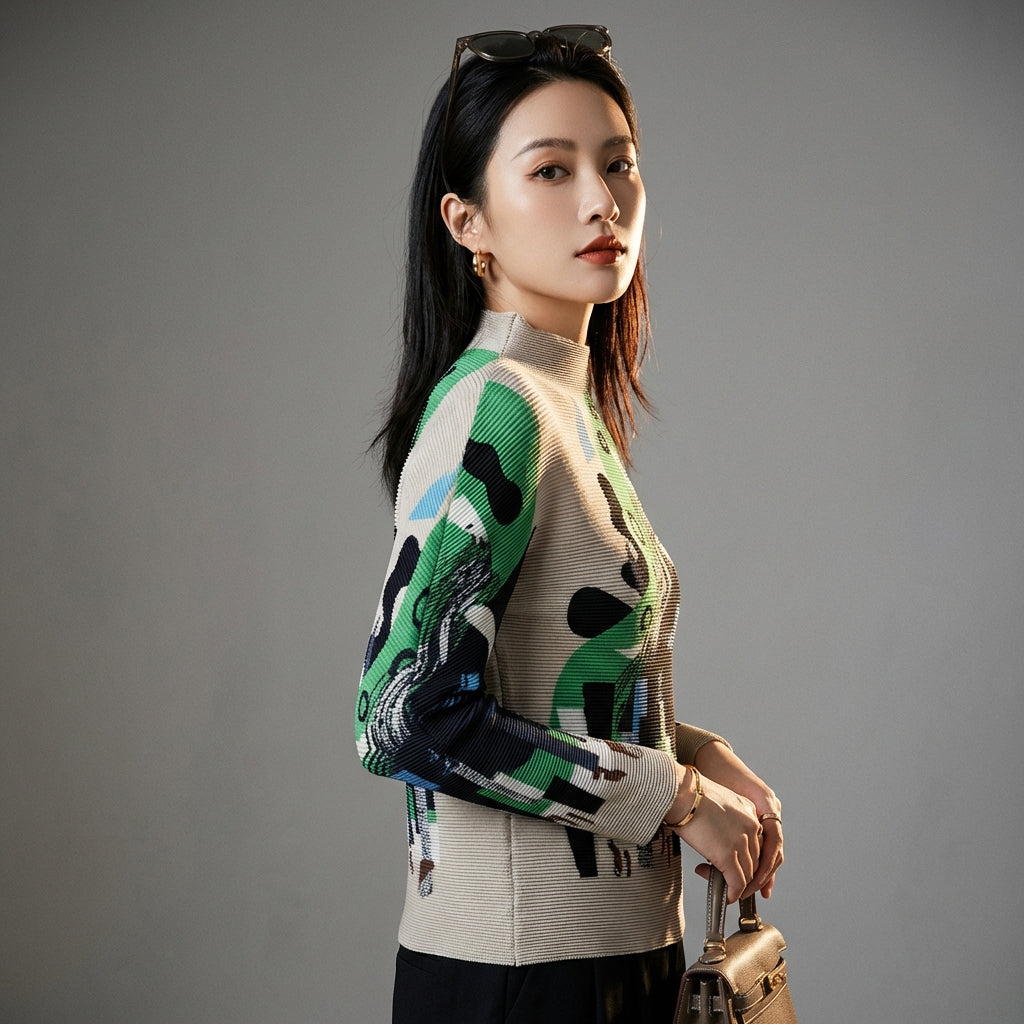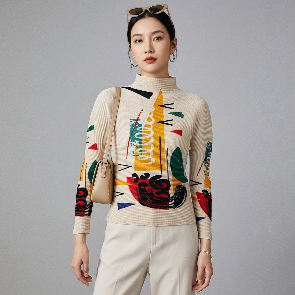 Entdecken Sie unsere trendige Plissee-Bluse, perfekt für einen eleganten und modernen Look. Mit ihrem einzigartigen Print und dem halbhohen Kragen bietet sie eine schlanke Silhouette und einen vielseitigen Stil. Ideal zum beidseitigen Tragen, passt sie sich all Ihren Wünschen an! ✨