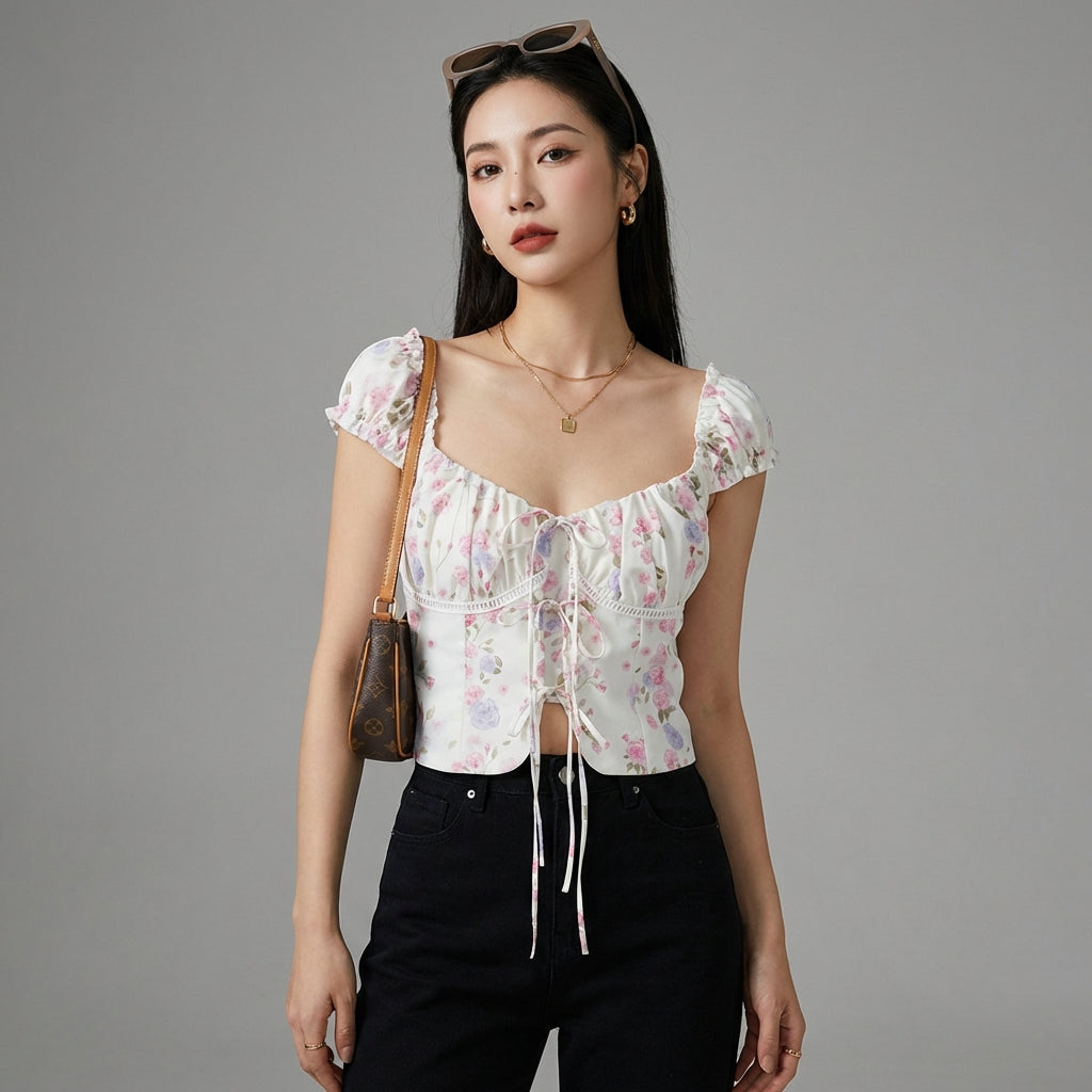 - Typ: Crop Top, V-Ausschnitt. Ein moderner und schmeichelhafter Schnitt, der die Silhouette betont.