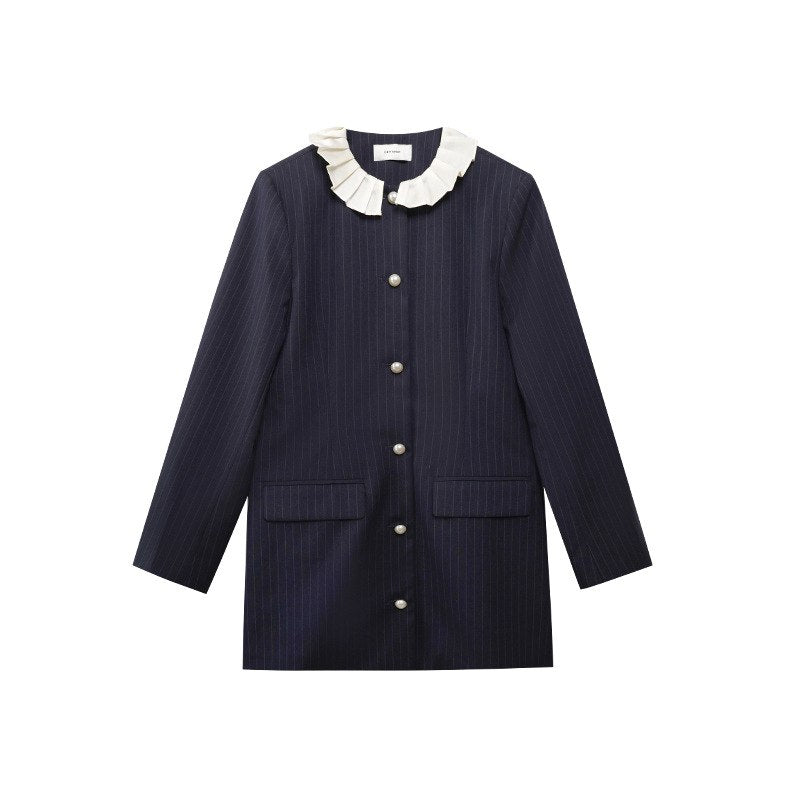 Kreieren Sie einen schicken und lässigen Look mit unserer Jacke mit Puppenkragen. Ihr einzigartiges Design und ihre lockere Passform machen sie zum perfekten Kleidungsstück für einen selbstbewussten und bequemen Stil. Ideal für alle Gelegenheiten! 💙