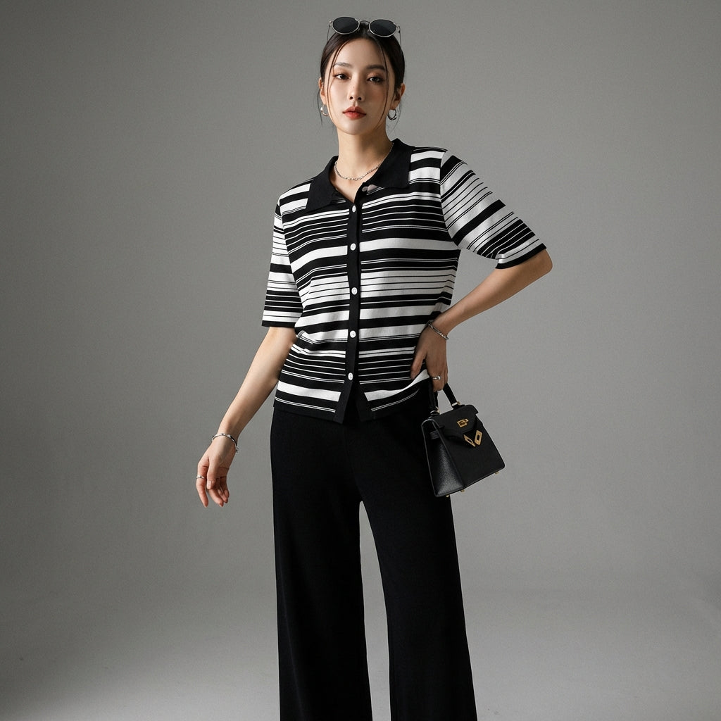 Kreieren Sie einen lässigen und schicken Look mit unserem gestreiften Zweiteiler, perfekt für jeden Anlass. Bequem und trendig wird er schnell zu einem Must-have in Ihrer Sommergarderobe! ☀️