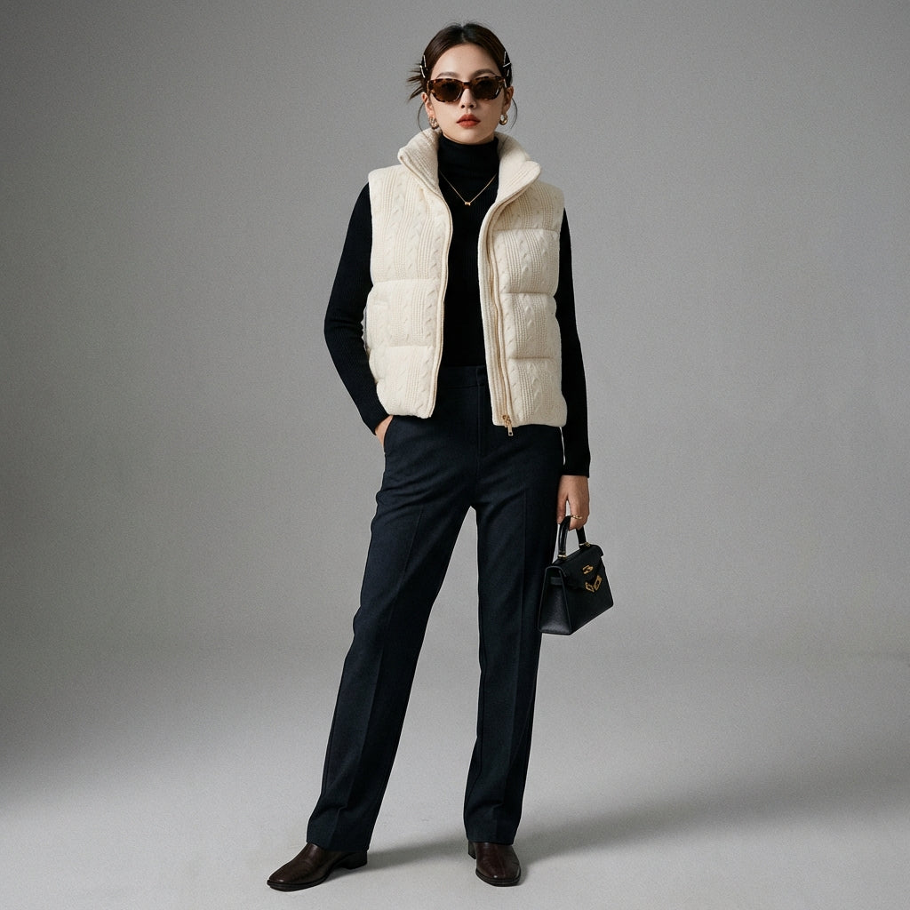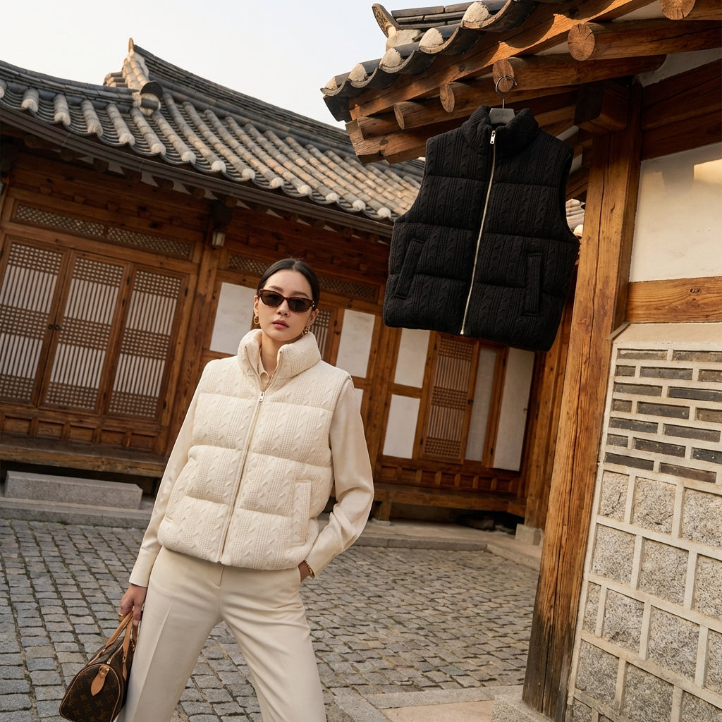 Diese gestrickte Weste ist ein Schlüsselstück für alle, die Komfort, Eleganz und die neuesten Trends der koreanischen Mode kombinieren möchten. Leicht zu stylen, wird sie schnell zu einem Favoriten in Ihrer Garderobe werden.