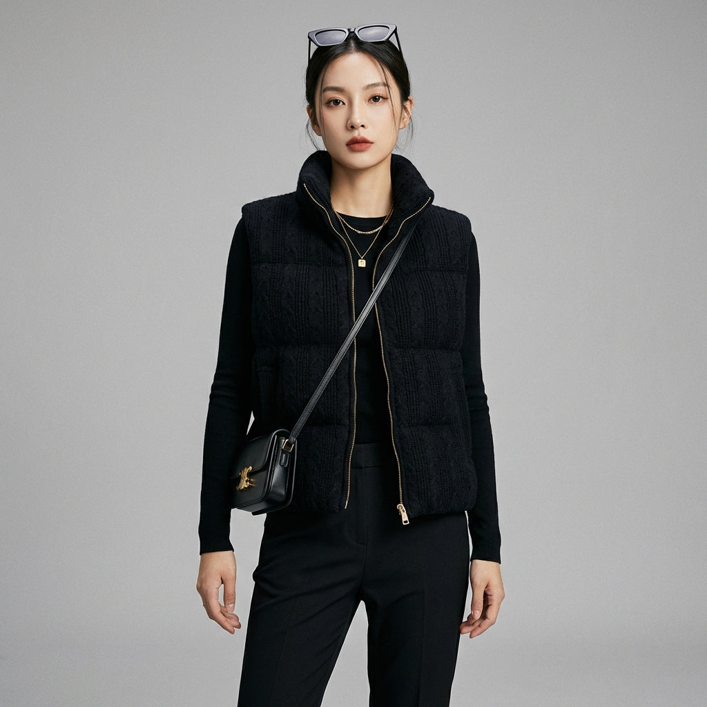 Kreieren Sie einen trendigen und raffinierten Look mit unserer gestrickten Weste, die über einen eleganten Stehkragen und einen Reißverschluss verfügt. Ihr ärmelloser Schnitt ist perfekt zum Überziehen und verleiht Ihren Outfits einen Hauch von Stil. Ein Must-have für einen schicken und modernen Auftritt! ✨