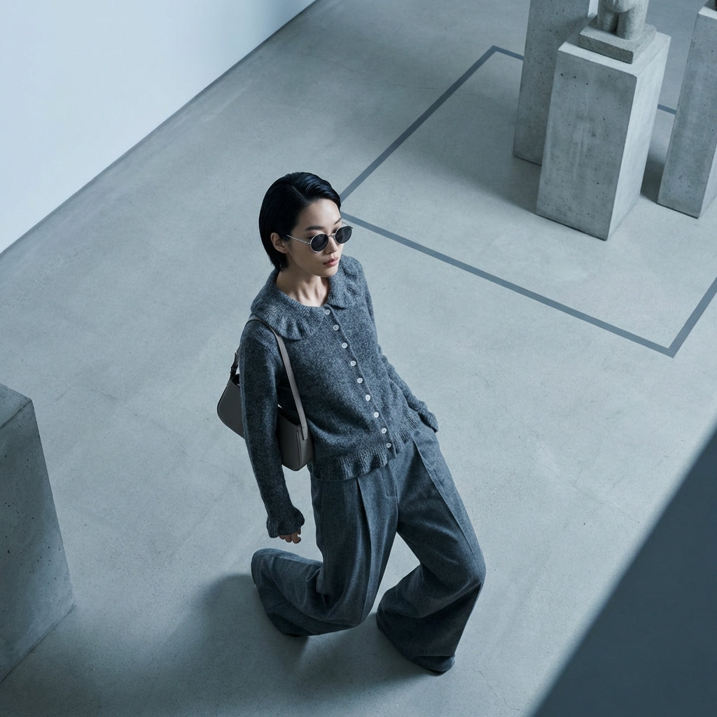 - Stil: Koreanische Mode, Chic, Minimalistisch. Dieser Cardigan verkörpert die diskrete Eleganz und die klaren Linien der koreanischen Mode, perfekt für einen raffinierten Look.