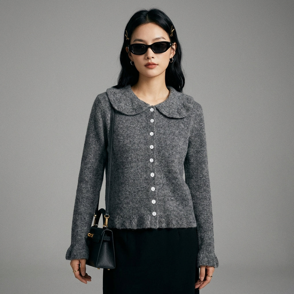 - Typ: Cardigan, Peter-Pan-Kragen, Lange Ärmel. Ein klassisches Design, neu interpretiert für eine moderne und feminine Silhouette.