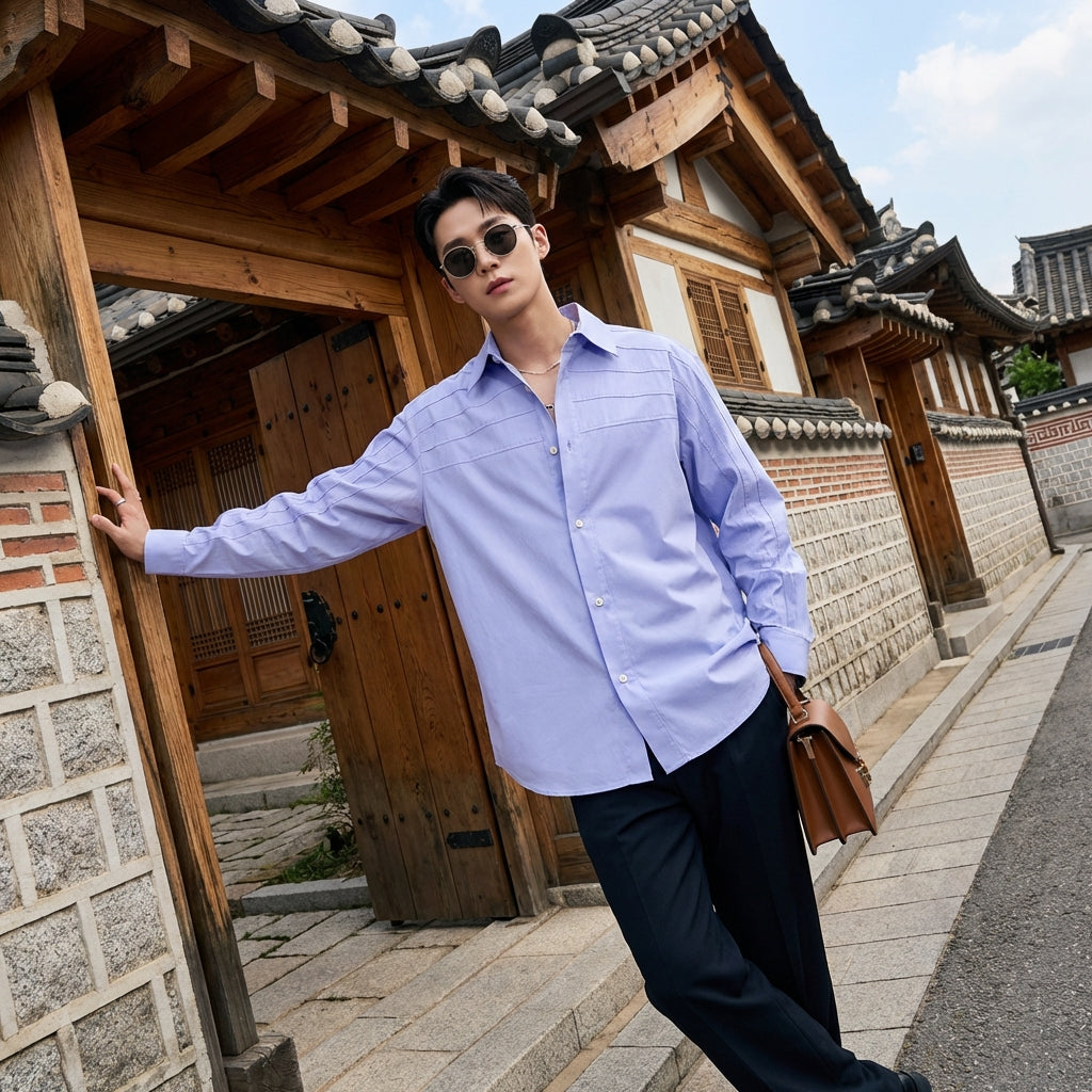 - Stil: K-Fashion, Retro, Lässig, Oversize. Inspiriert von der koreanischen Mode, kombiniert dieses Hemd einen Retro-Stil mit einem modernen und weiten Schnitt.