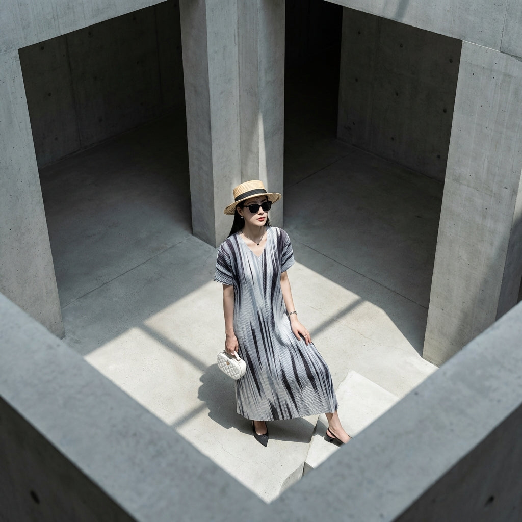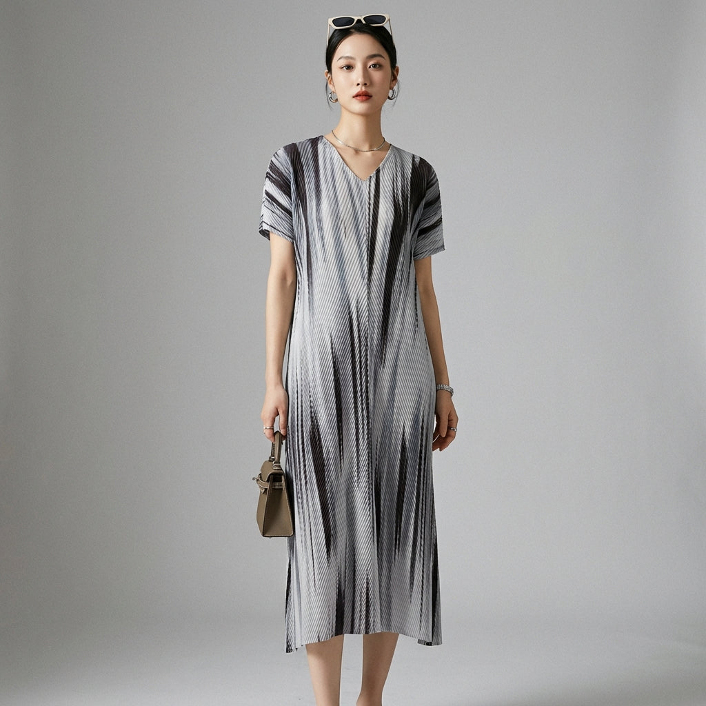 Verleihen Sie sich einen eleganten und bequemen Look mit unserem plissierten V-Ausschnitt-Kleid. Sein ausgestellter Schnitt und die subtilen Details machen es zu einer idealen Wahl für alle Gelegenheiten, die Weiblichkeit und Lässigkeit vereinen! ✨