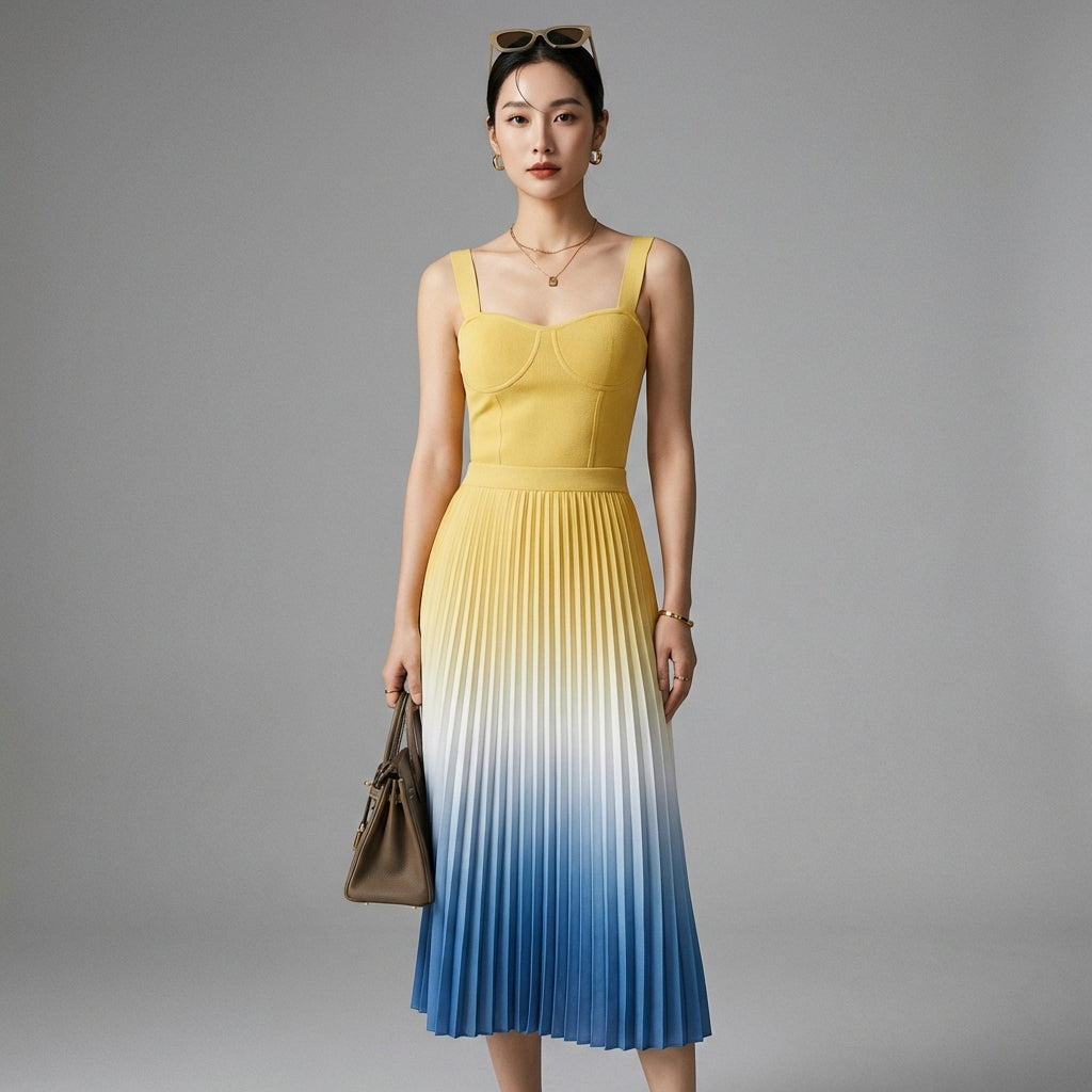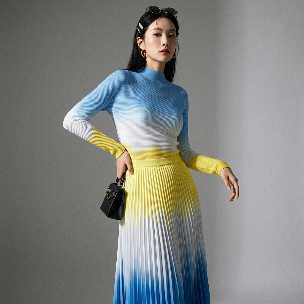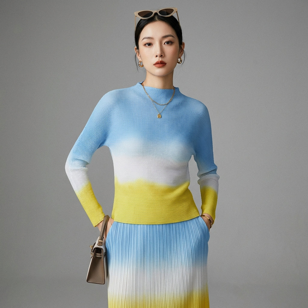 Betonen Sie Ihren Stil mit diesem modernen und eleganten Set, bestehend aus einem strukturierten Top und einem langen Plisseerock. Ideal für einen raffinierten und trendigen Look zu jedem Anlass! ✨