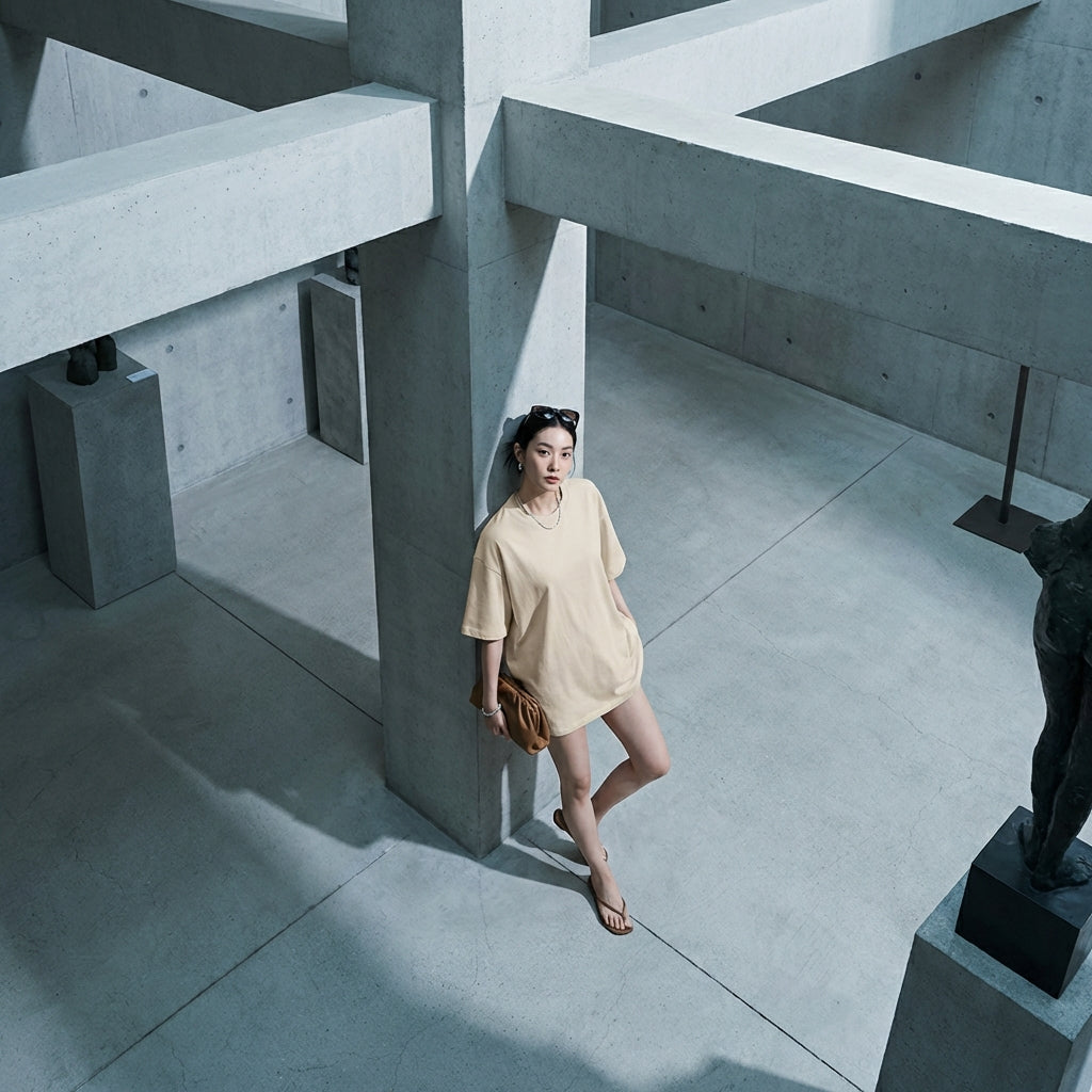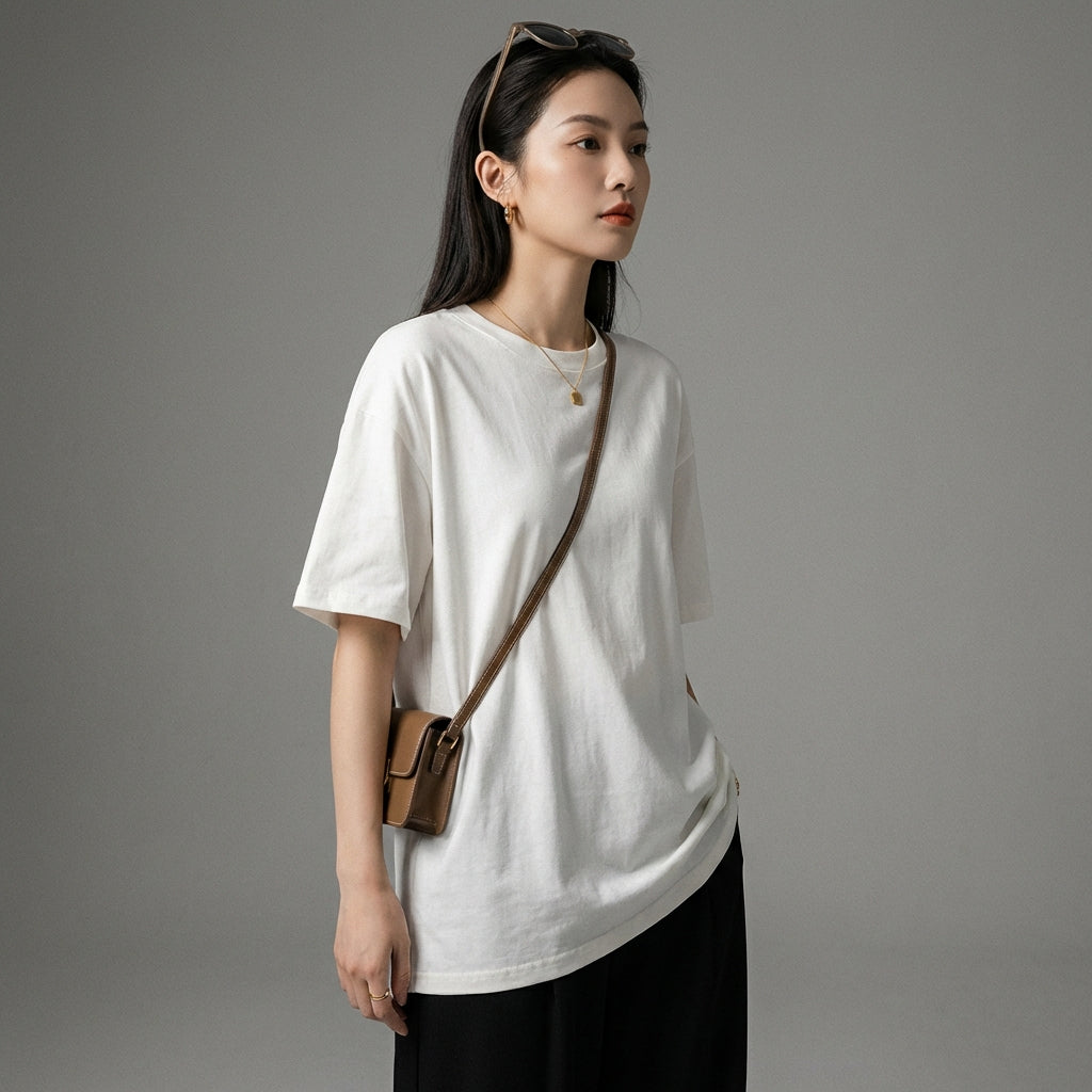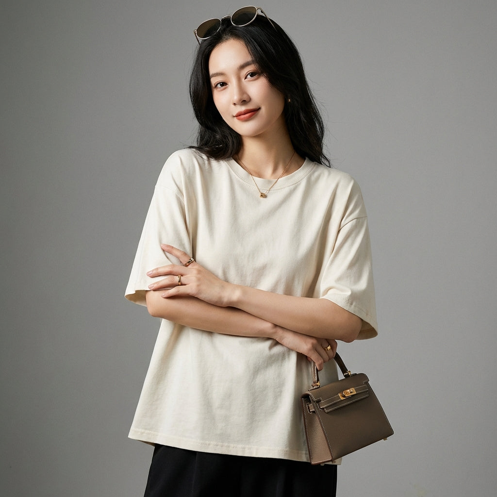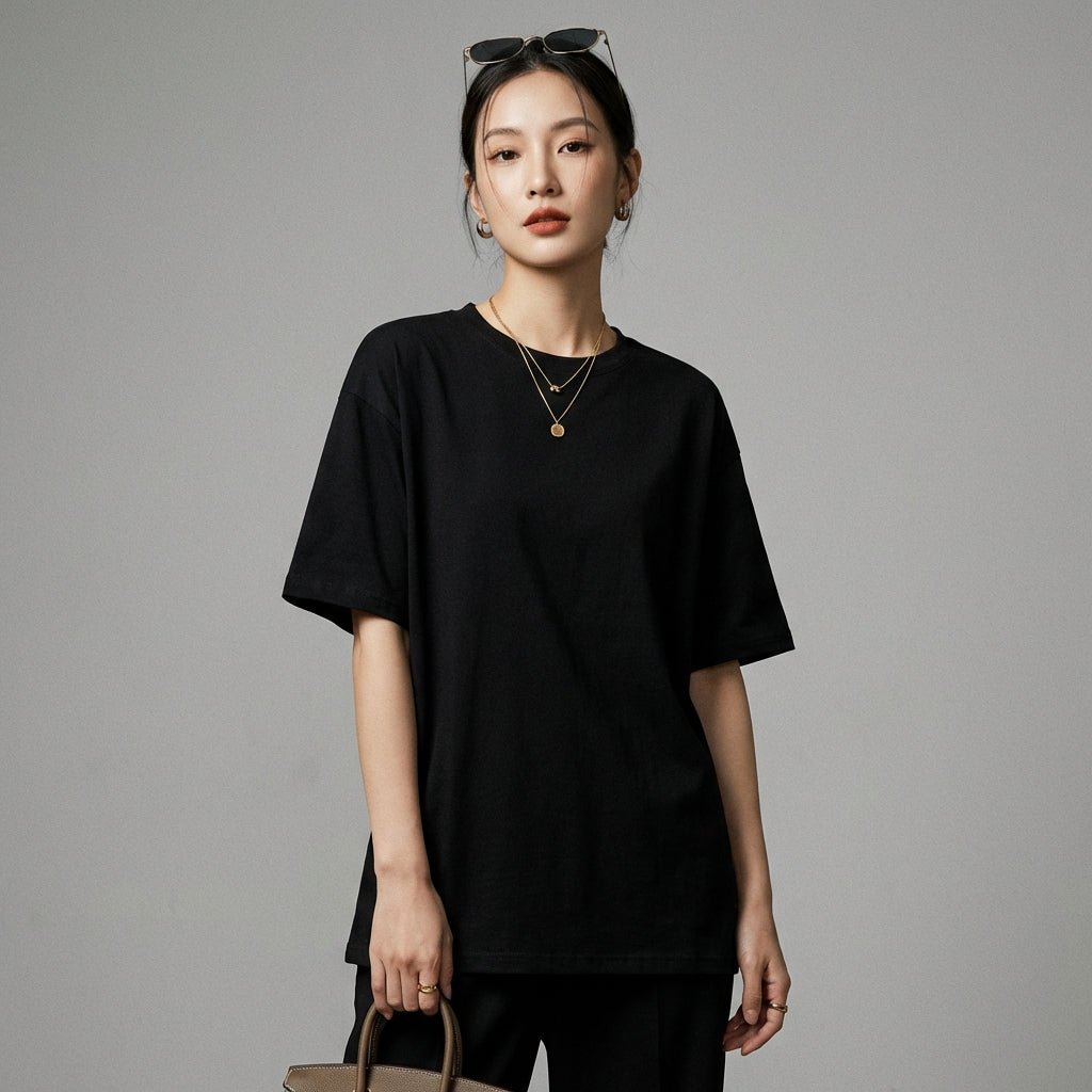 - Stil: Minimalistisch, Lässig, K-Fashion. Dieses T-Shirt verkörpert die diskrete Eleganz und die klaren Linien der koreanischen Mode, perfekt für einen urbanen oder entspannten Stil.