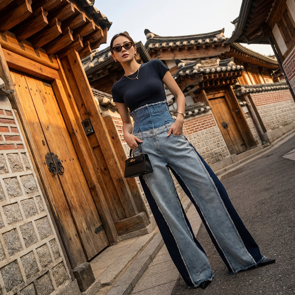 Entscheiden Sie sich für diese Jeans, um Ihrer Garderobe einen Hauch von Originalität und Komfort zu verleihen und gleichzeitig an der Spitze der koreanischen Mode zu bleiben.