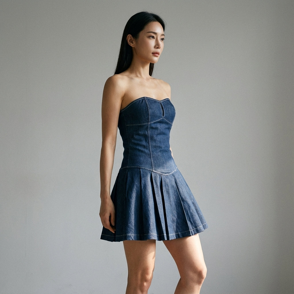 Betonen Sie Ihren Stil mit unserem kurzen, plissierten Kleid mit tiefem Bund, einem gewagten und trendigen Design. Mit Bustier-Ausschnitt und rückenfrei ist dieses Kleid perfekt für alle, die auffallen möchten. Sein schmeichelhafter Schnitt und die durchbrochenen Details machen es zu einem einzigartigen Stück für Ihre Sommerabende! ☀️