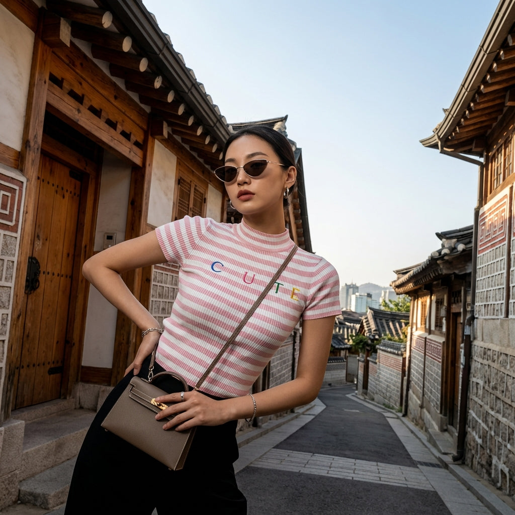 - Stil: K-Fashion, Streetwear, Trend. Dieses T-Shirt verkörpert die koreanische Urban Fashion, perfekt für einen lässigen, aber stilvollen Look.