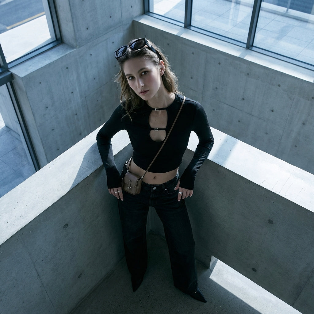 - Typ: Crop Top, Slim Fit. Ein kurzer und figurbetonter Schnitt, der die Silhouette betont, ideal zum Schichten oder allein zu tragen.