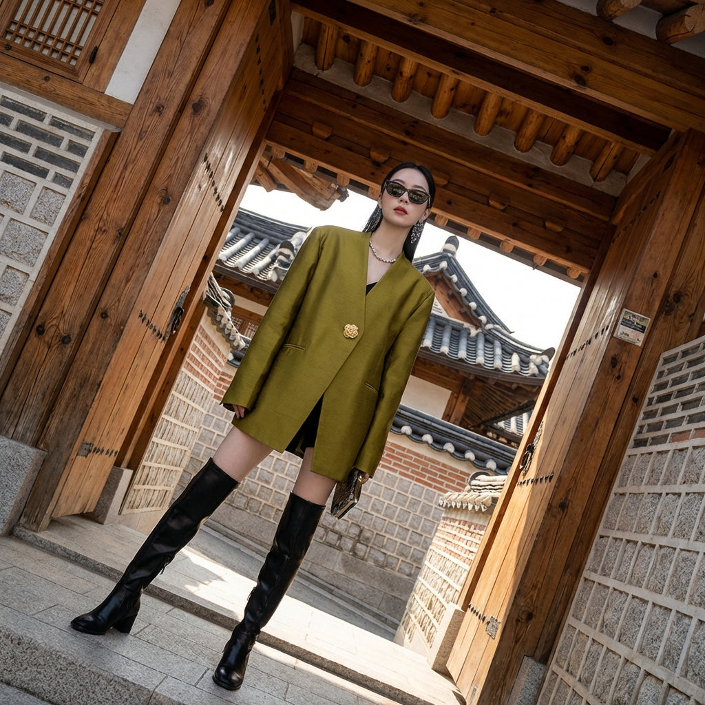 - Stil: Koreanische Mode, Streetwear, Chic. Dieser Blazer verkörpert die lässige Eleganz der K-Fashion, ideal für einen trendigen und raffinierten Look.