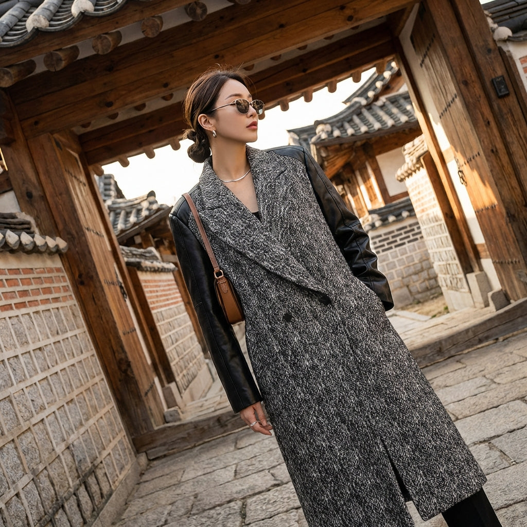 • Stil: Minimalistisch, Streetwear, K-Fashion. Dieser Mantel verkörpert die diskrete Eleganz und Modernität der koreanischen Mode mit einem urbanen Touch.
