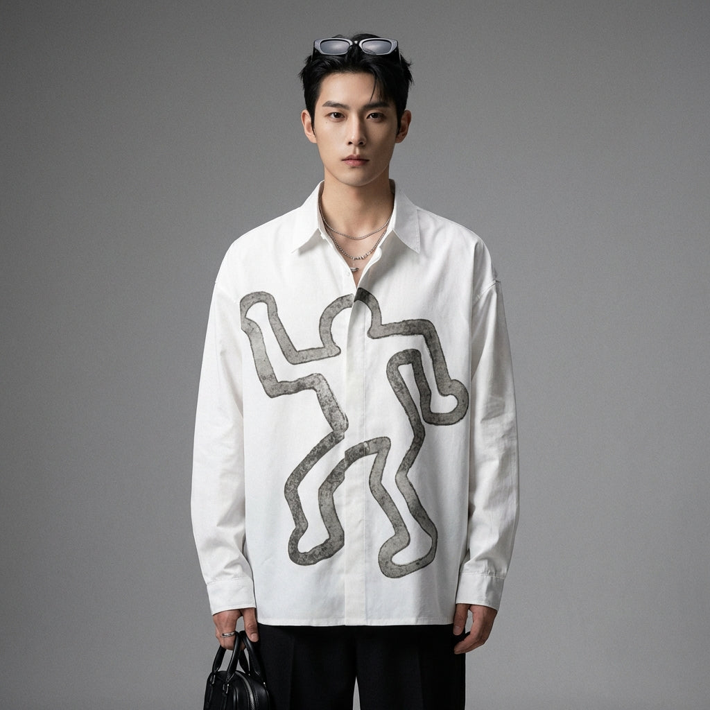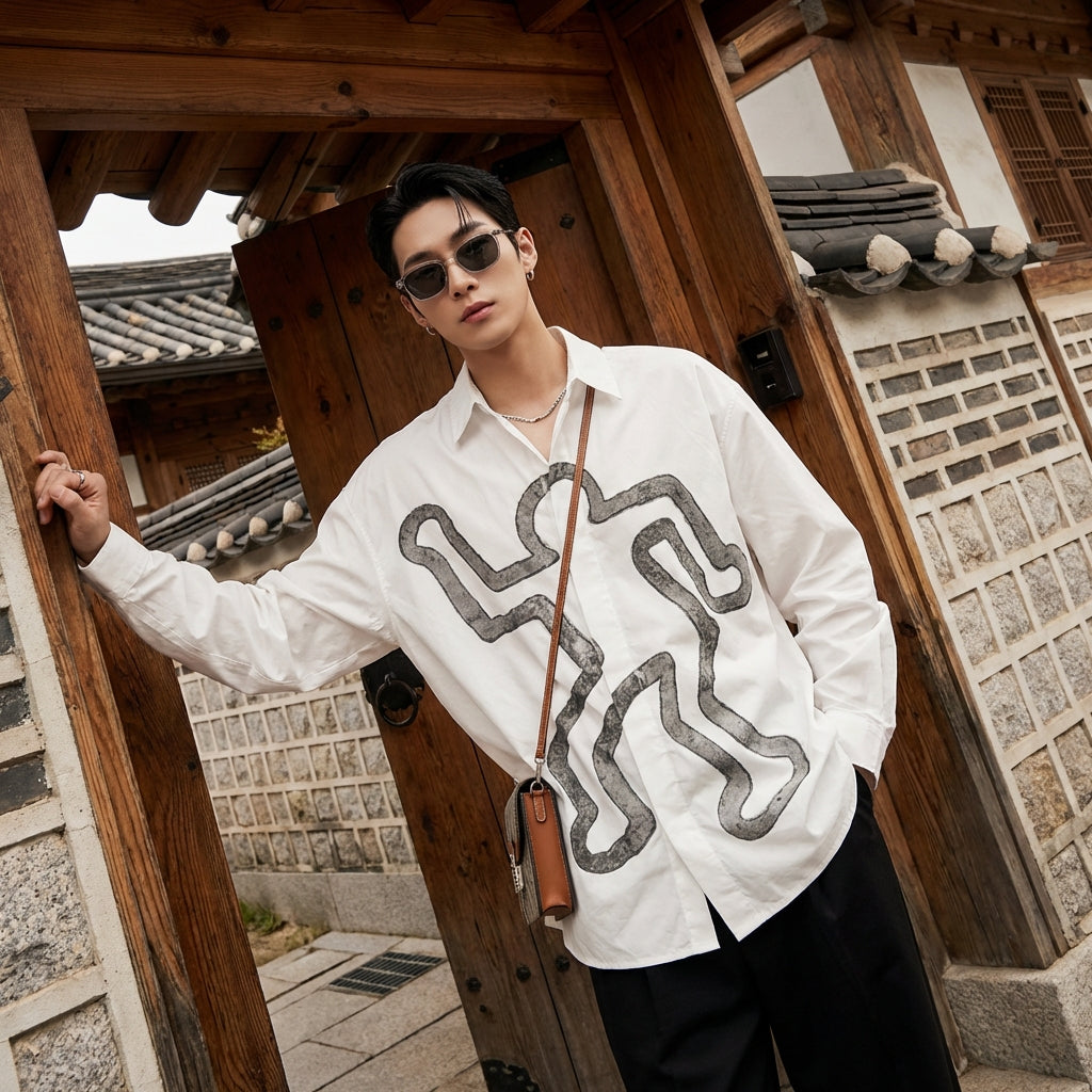 - Stil: Streetwear, K-Fashion, Retro. Inspiriert von urbaner Ästhetik und koreanischer Mode, ist dieses Hemd perfekt für einen mutigen und zeitgenössischen Look.