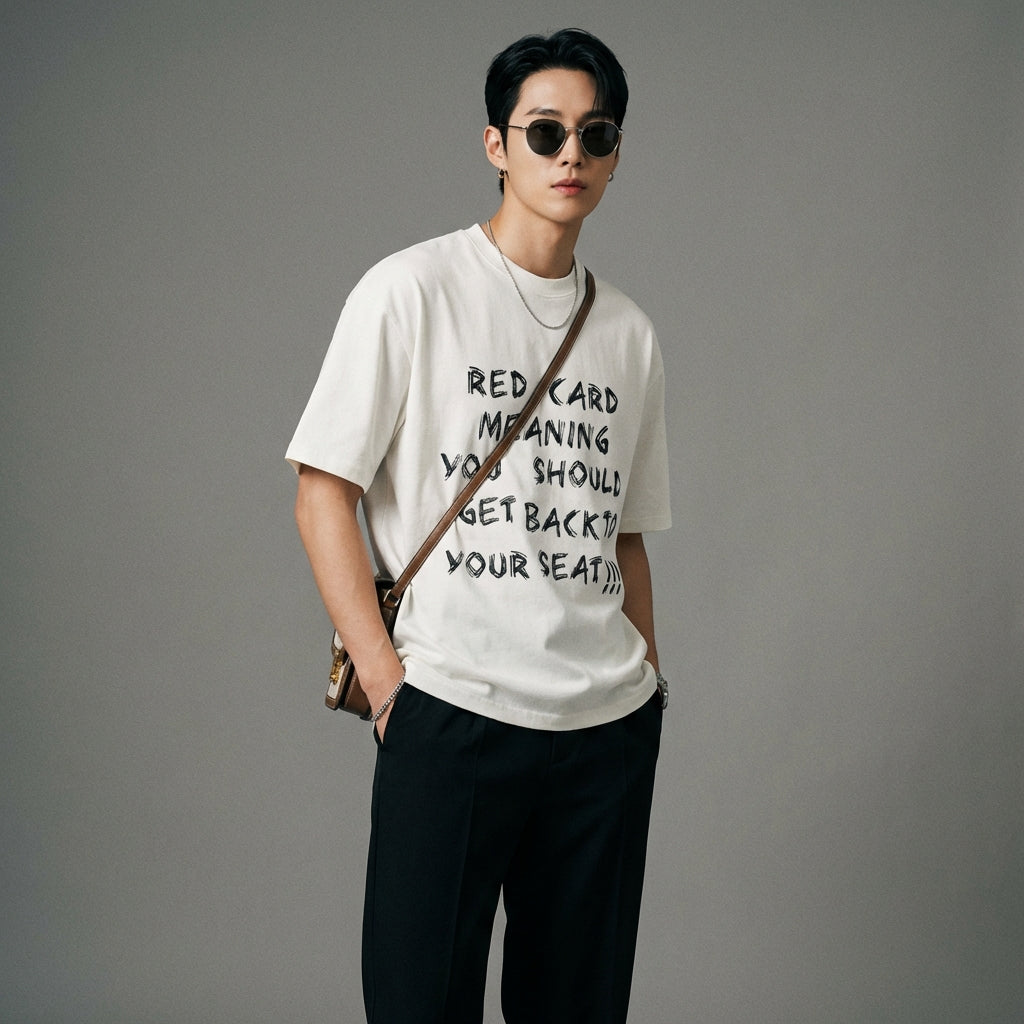 - Stil: Streetwear, K-Fashion, Lässig. Dieses T-Shirt verkörpert die urbane und moderne Ästhetik, inspiriert von der koreanischen Mode, ideal für einen trendigen und mühelosen Look.