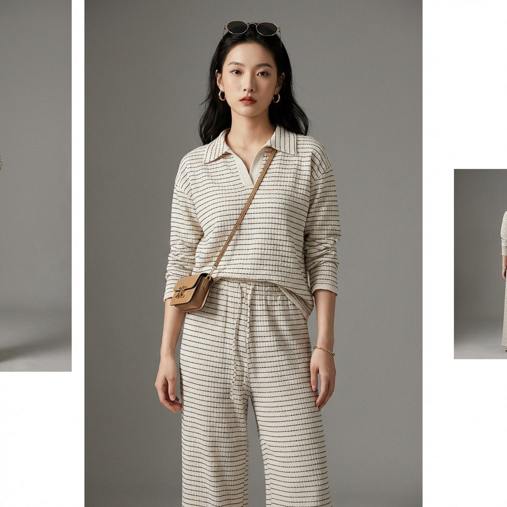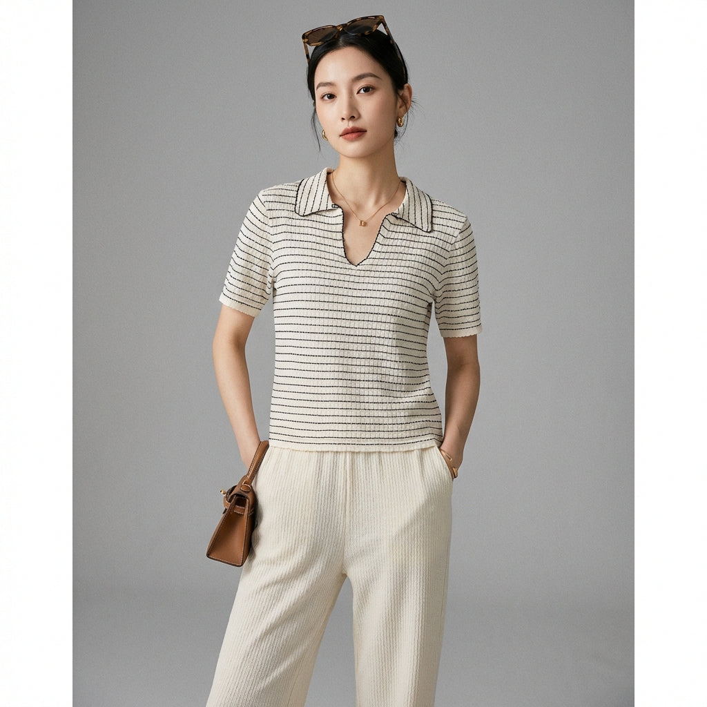- Typ: Set, Oberteil mit Polokragen, lange Hose. Ein komplettes und harmonisches Outfit, das leicht zusammen oder getrennt getragen werden kann, um mehrere Looks zu kreieren.