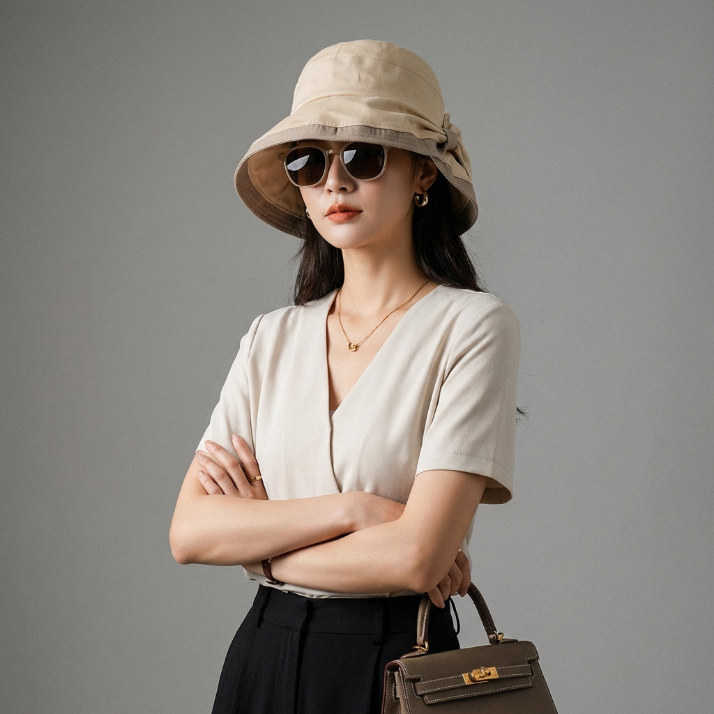 Mit seinem vielseitigen Stil und effektiven Schutz ist dieser Hut das perfekte Accessoire, um Ihre Sommergarderobe zu ergänzen und Ihren Outfits einen Hauch koreanischer Raffinesse zu verleihen.