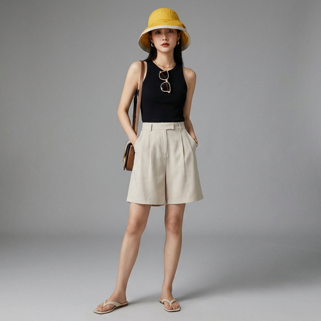 - Zusammensetzung: Hochwertige Baumwollmischung. Diese Materialwahl garantiert leichten Komfort und perfekte Atmungsaktivität für sonnige Tage.