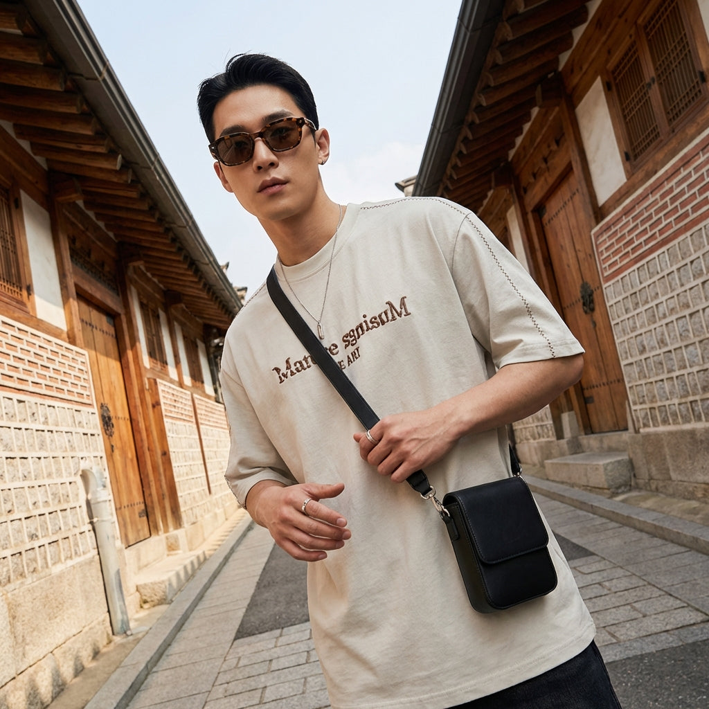- Stil: Streetwear, K-Fashion, Lässig. Dieses T-Shirt verkörpert die lässige und gewagte Ästhetik der koreanischen Urban Fashion, perfekt für einen modernen und trendigen Look.