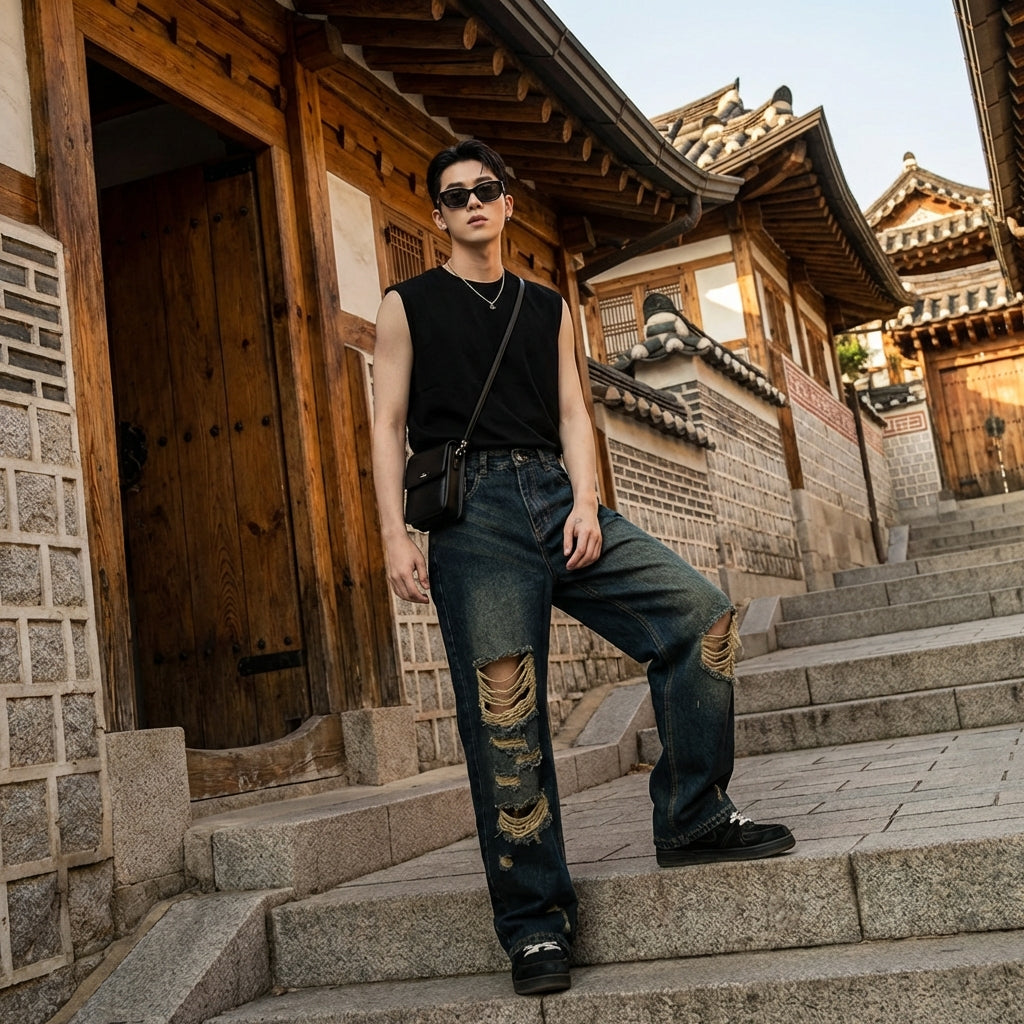 - Stil: Streetwear, Lässig, Urban. Perfekt für einen modernen Look, inspiriert von koreanischer Mode, ideal für alle Gelegenheiten.