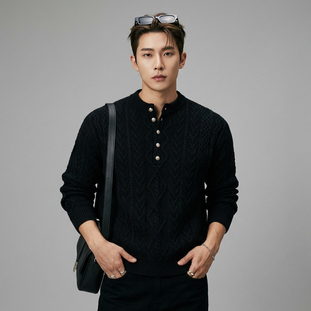Kreieren Sie einen lässigen und doch raffinierten Look mit unserem Basic-Rundhalspullover für Herren. Dieser langärmelige Pullover wurde für Komfort und Stil entworfen und verfügt über subtile Steppdetails, die Ihrem Alltagsoutfit einen Hauch von Originalität verleihen! ✨