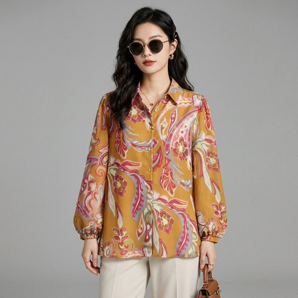 Kreieren Sie einen trendigen und raffinierten Look mit unserem bedruckten Langarmhemd. Der klassische Umlegekragen und der Knopfverschluss machen es zu einem vielseitigen Kleidungsstück für alle Gelegenheiten. Perfekt für einen schicken und modernen Stil! ✨