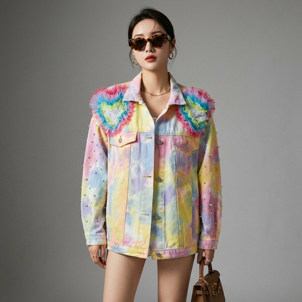 Entscheiden Sie sich für diese bestickte Jeansjacke, um Ihre Garderobe mit einem starken und charaktervollen Stück aufzuwerten, inspiriert von den neuesten K-Fashion-Trends.
