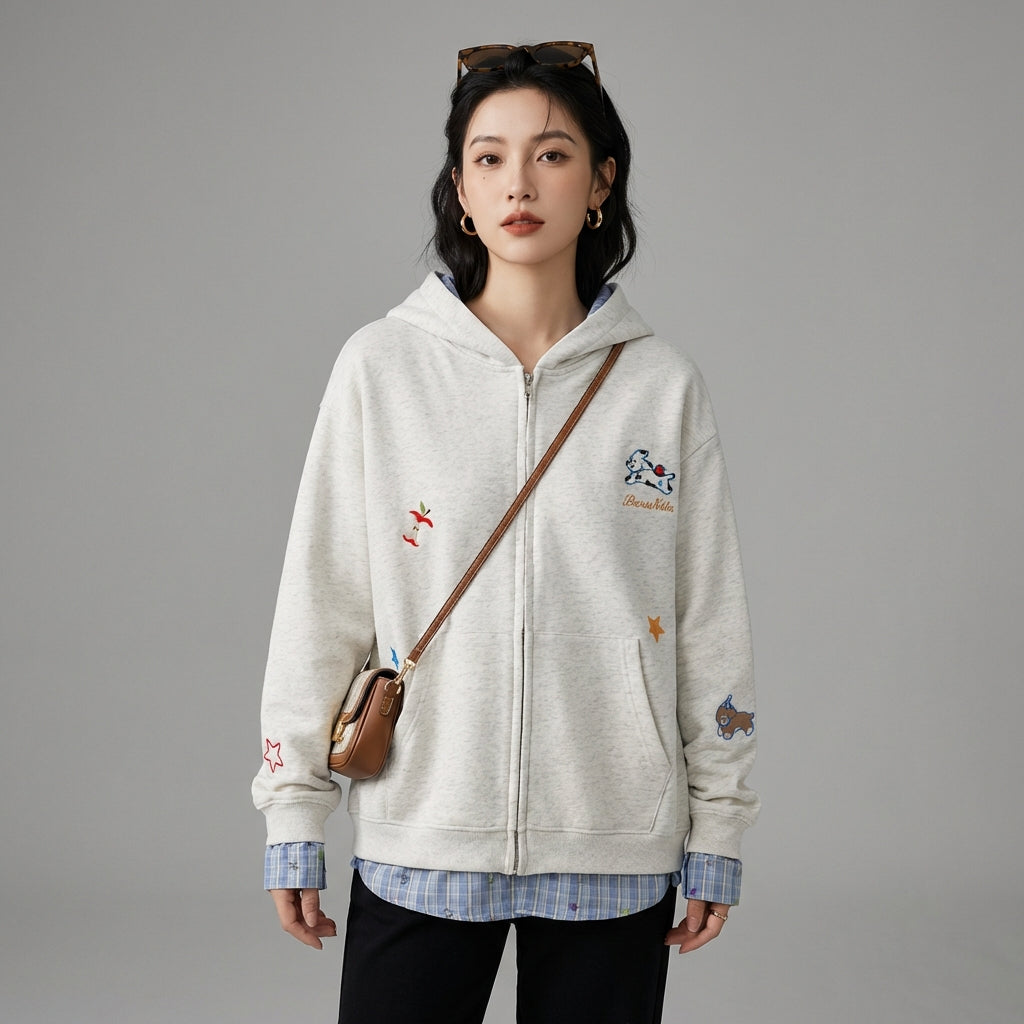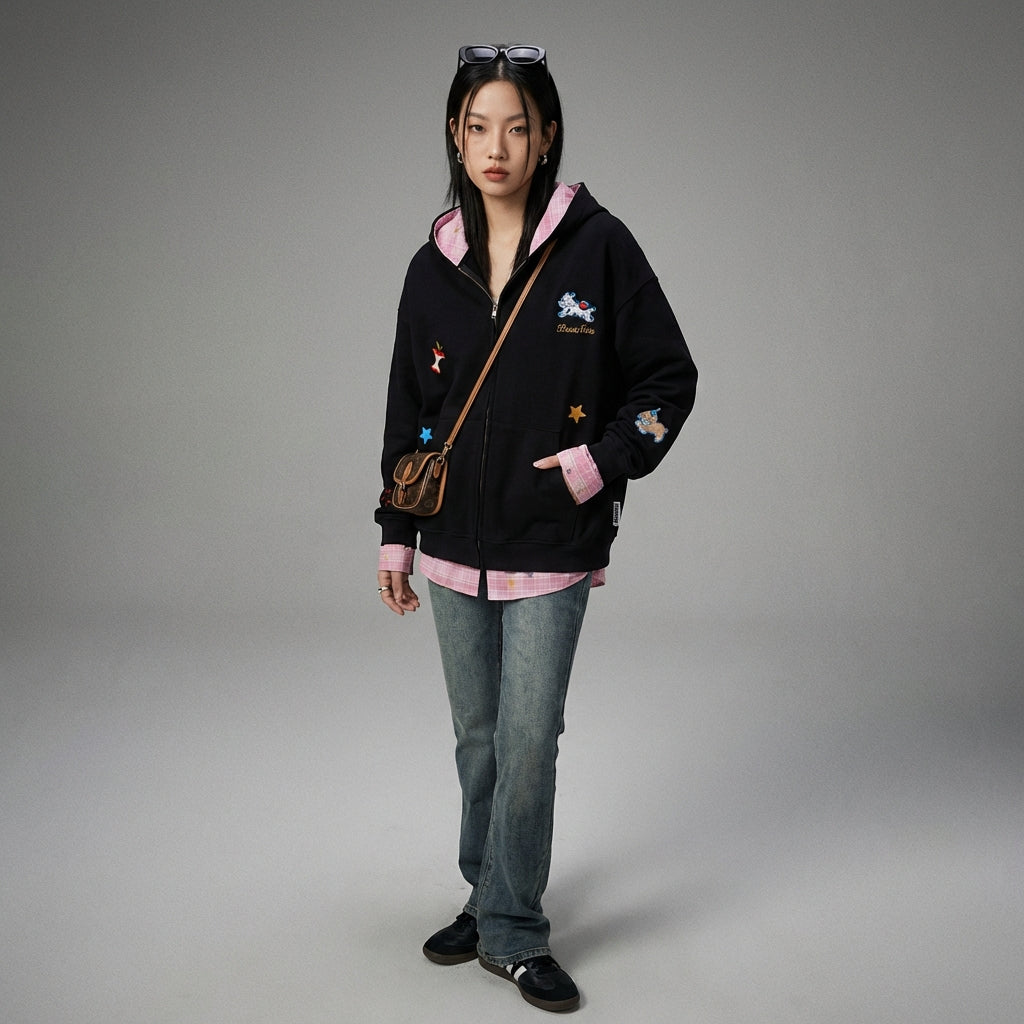 Ob für einen Ausflug mit Freunden oder einen entspannten Tag, dieser bestickte Kapuzenpullover wird schnell zu einem unverzichtbaren Bestandteil Ihrer Garderobe für seinen Stil und seine Bequemlichkeit.