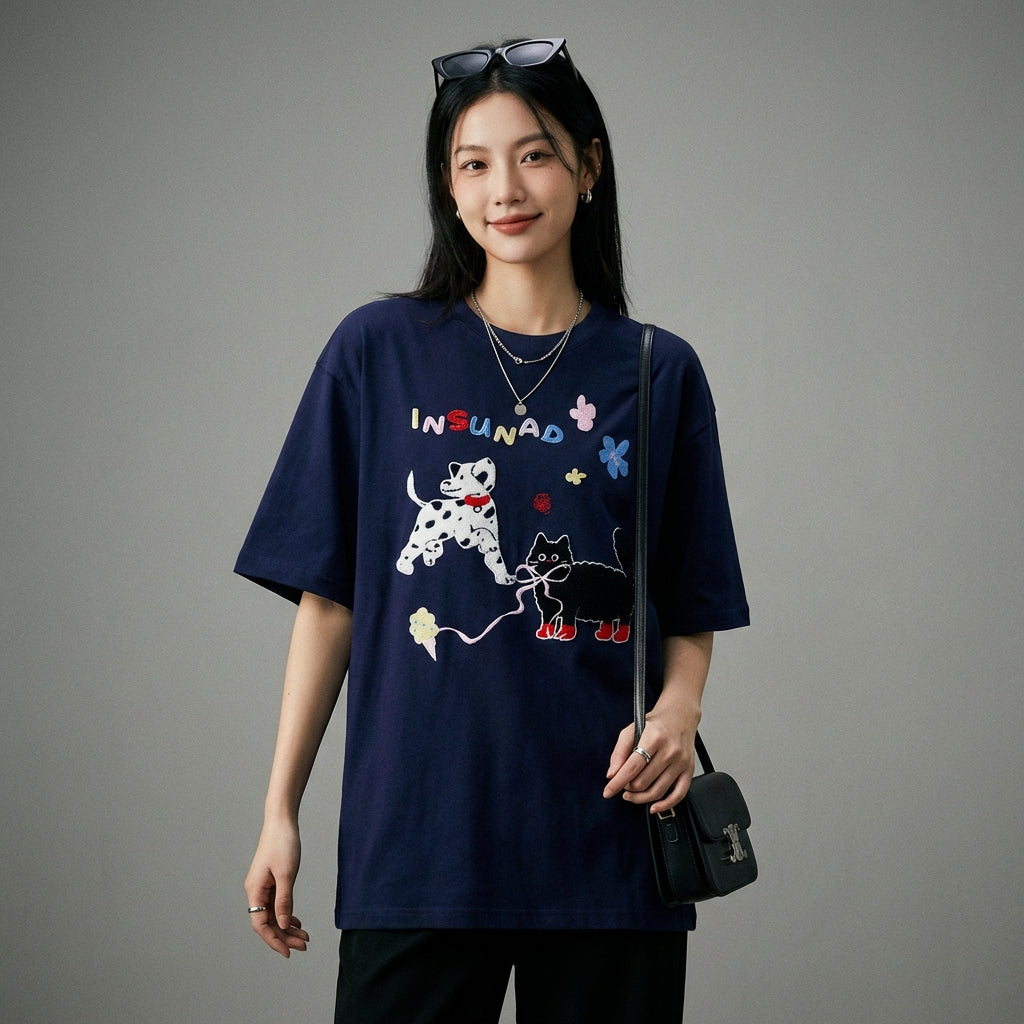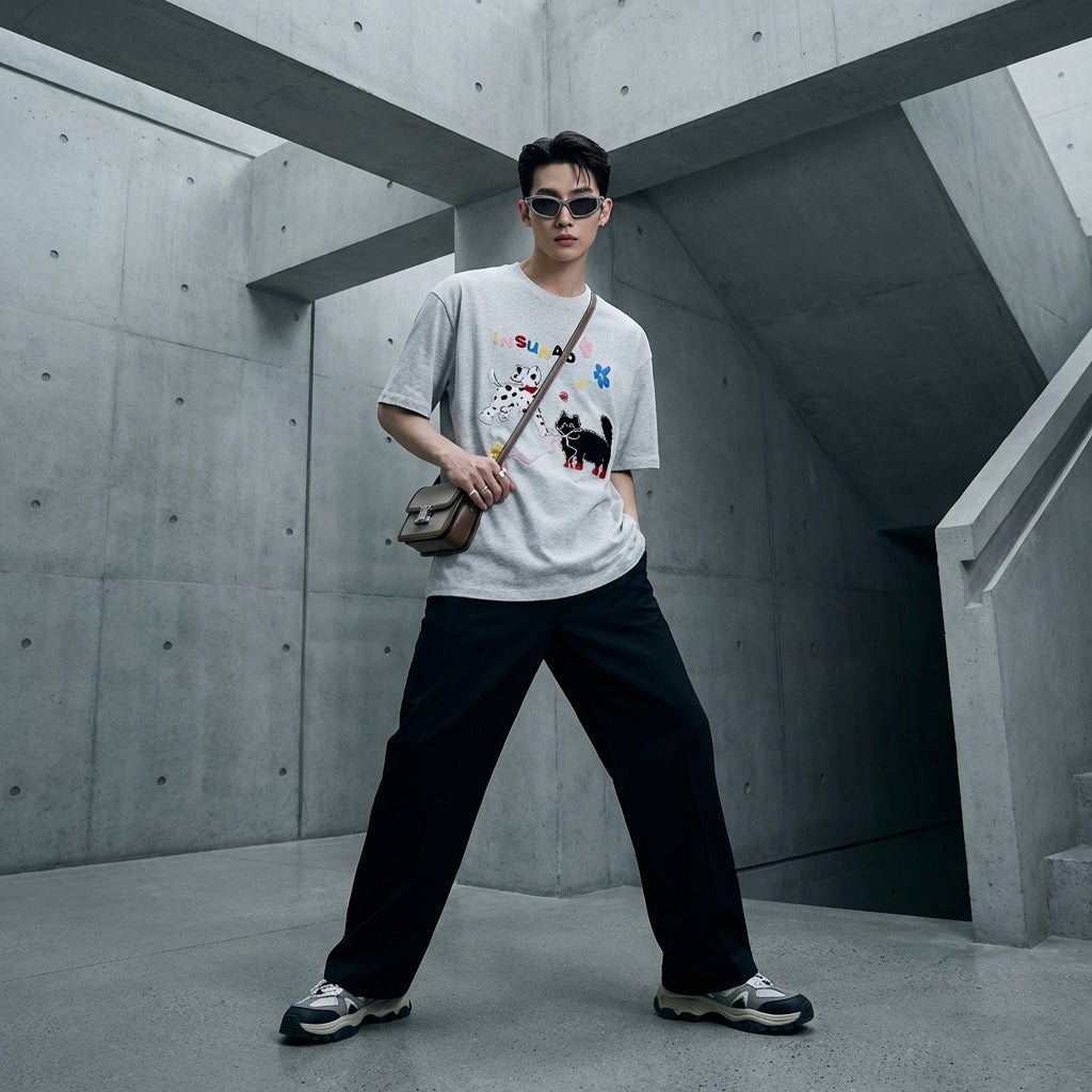 - Stil: Streetwear, Lässig, K-Fashion. Dieses T-Shirt verkörpert den jungen und trendigen Geist der koreanischen Mode, perfekt für einen urbanen und entspannten Look.