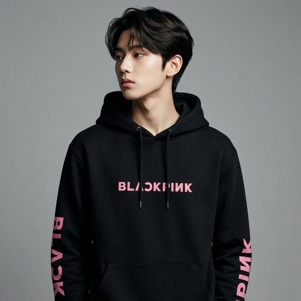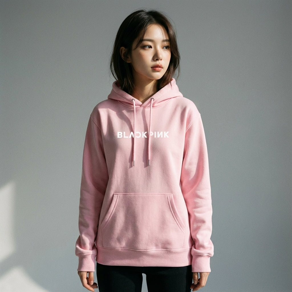 - Repräsentieren Sie die Gruppe Blackpink, indem Sie diesen Hoodie mit dem Bild der Gruppe tragen.