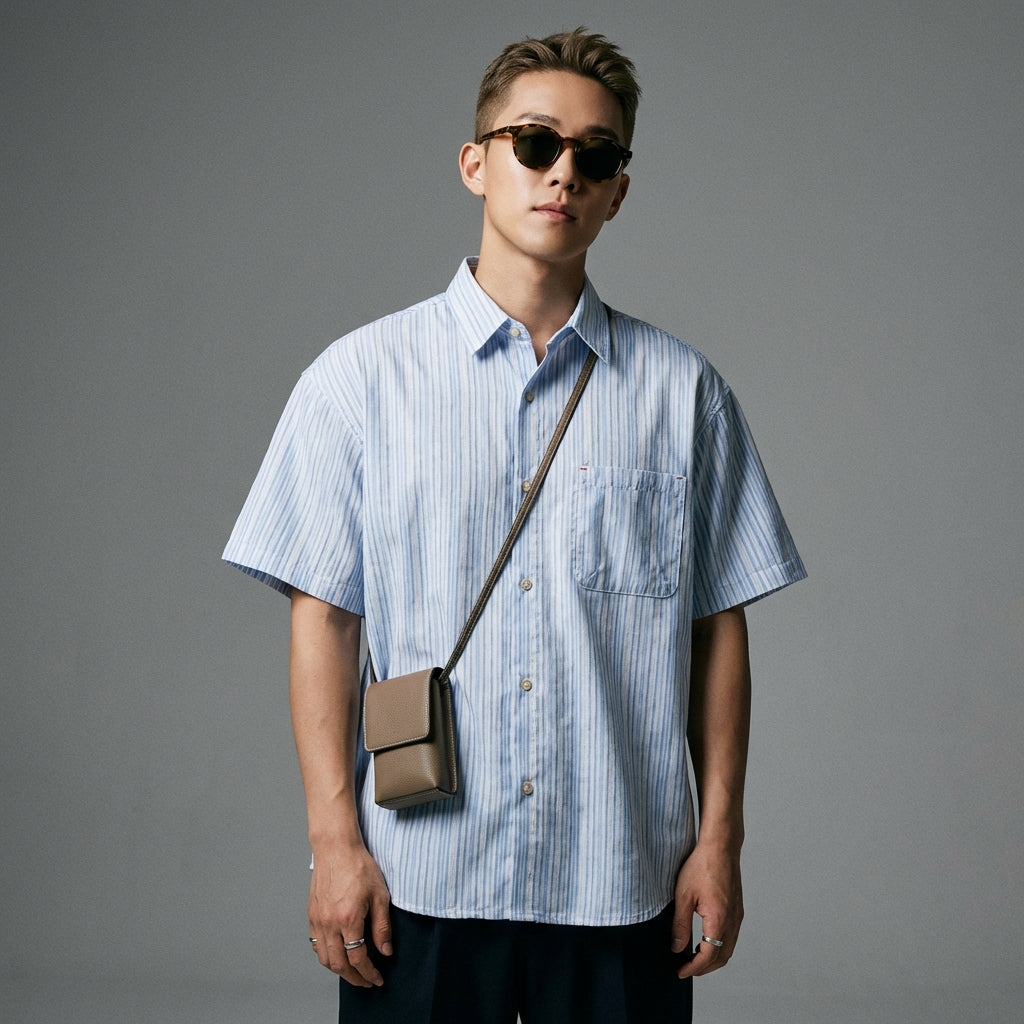 - Stil: Streetwear, Casual, K-Fashion. Dieses Hemd verkörpert den Geist der lässigen koreanischen Mode, perfekt für einen trendigen und mühelosen Look.