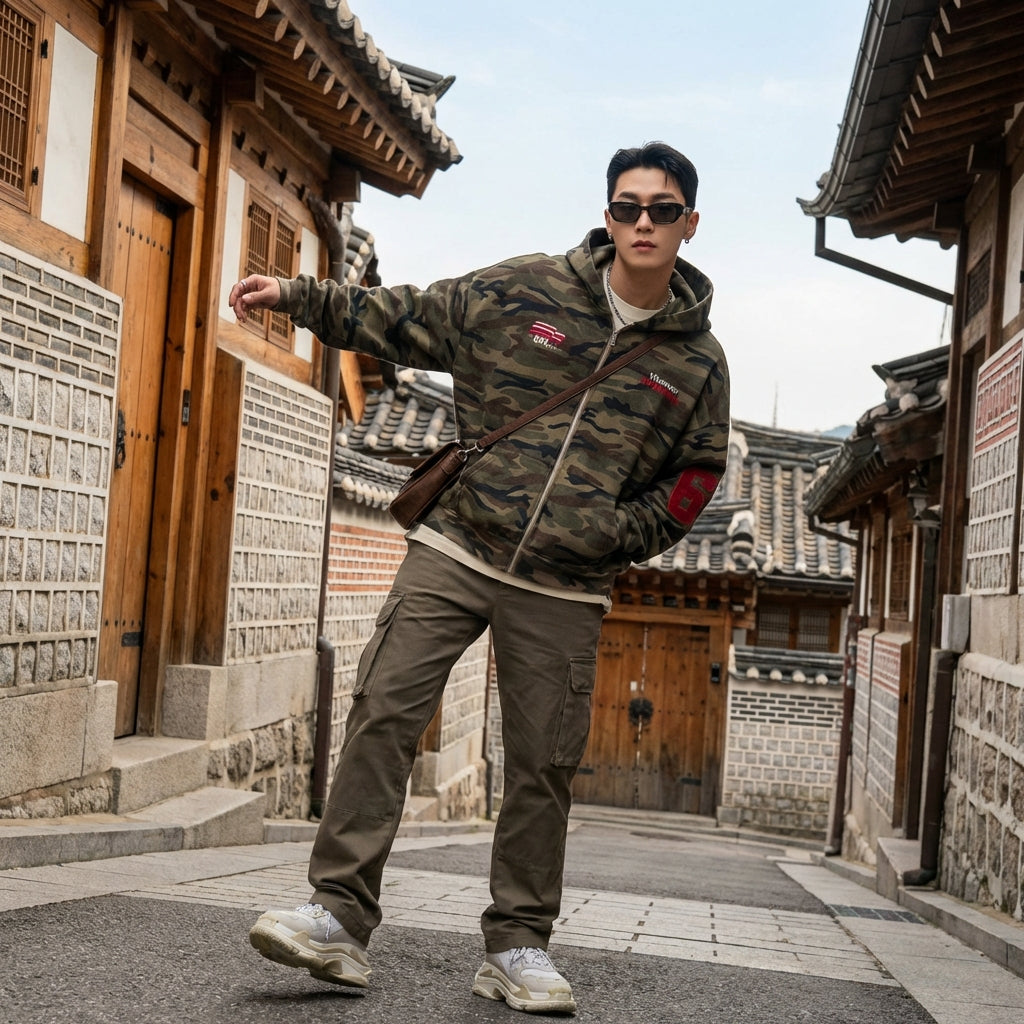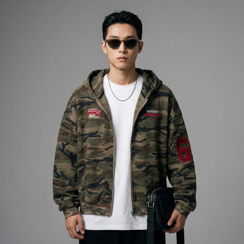 Betonen Sie Ihren urbanen Stil mit diesem Camouflage-Kapuzenpullover, perfekt für einen lässigen und trendigen Look. Sein Oversize-Design und die subtile Stickerei machen ihn zu einem Statement-Piece für jede Jahreszeit! 💥