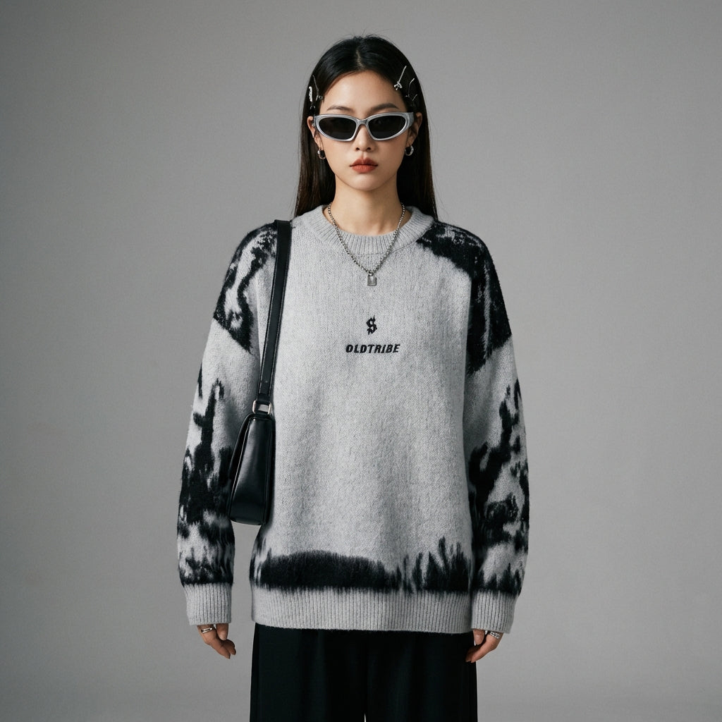 - Stil: Streetwear, K-Fashion, Lässig. Dieser Pullover verkörpert den Geist der urbanen koreanischen Mode, ideal für einen modernen und mühelosen Stil.