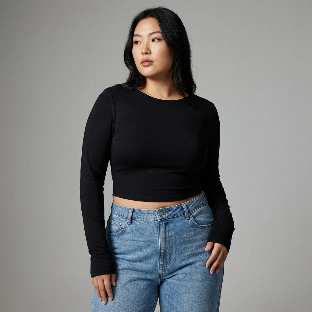 - Typ: Kurzes Oberteil, Figurbetonter Schnitt. Ideal, um die Silhouette mit einem modernen und raffinierten Touch zu betonen.