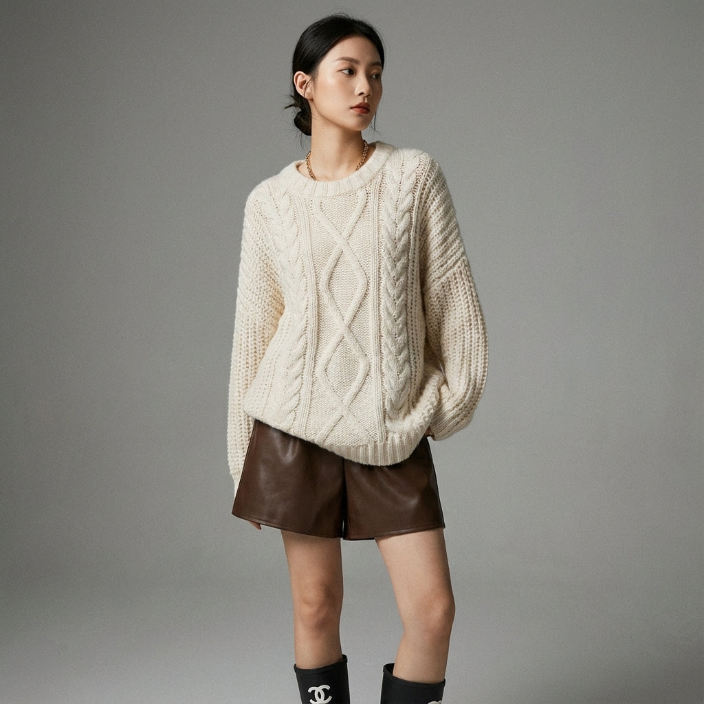 Entdecken Sie unseren gestrickten Zopfmusterpullover für Damen, ein Must-have der koreanischen Mode. Mit seinem Rundhalsausschnitt und der weiten Passform vereint er Komfort und lässige Eleganz für alle Gelegenheiten. Erhältlich in verschiedenen Farben, ist er das perfekte Stück für einen trendigen und gemütlichen Look! ✨
