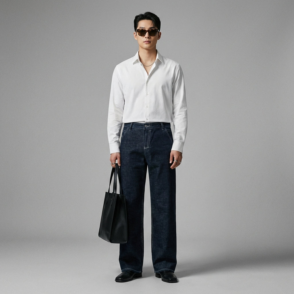- Stil: Streetwear, K-Fashion, Lässig. Diese Jeans verkörpert den koreanischen Urban Style, ideal für einen modernen und mühelosen Look.