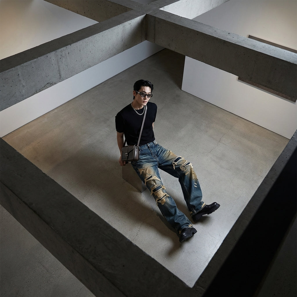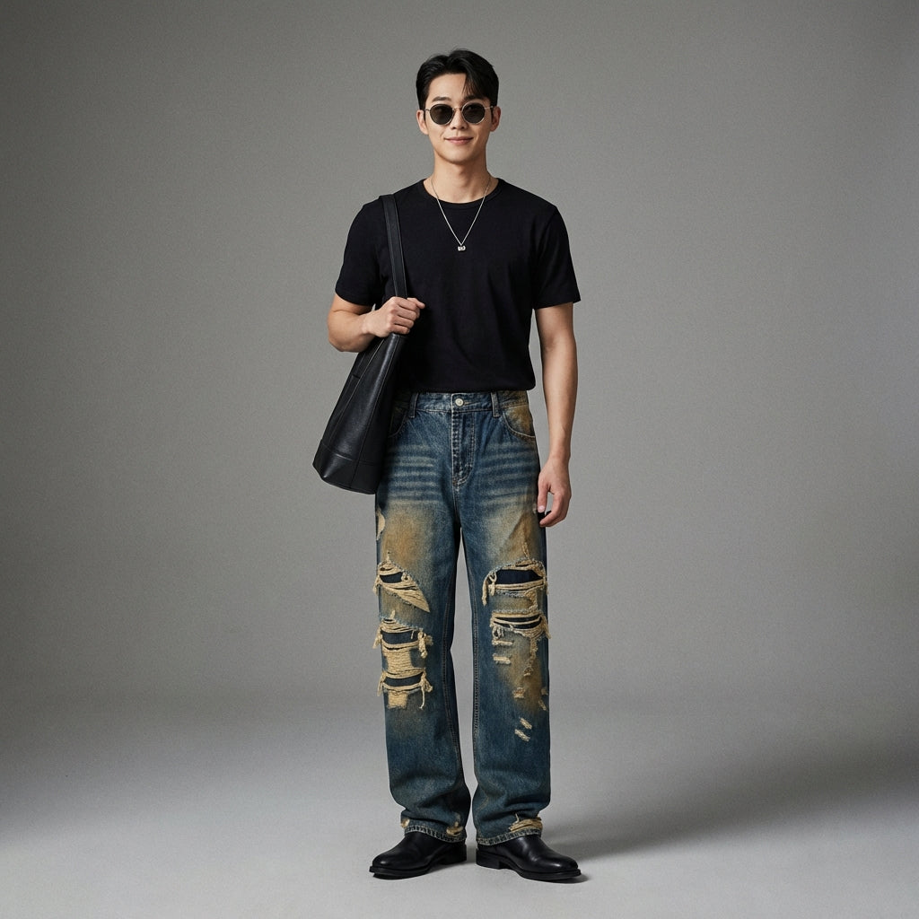 - Stil: Retro, Streetwear, Koreanisch. Diese Jeans verkörpert einen lässigen und trendigen Stil, inspiriert von koreanischen Modetrends.