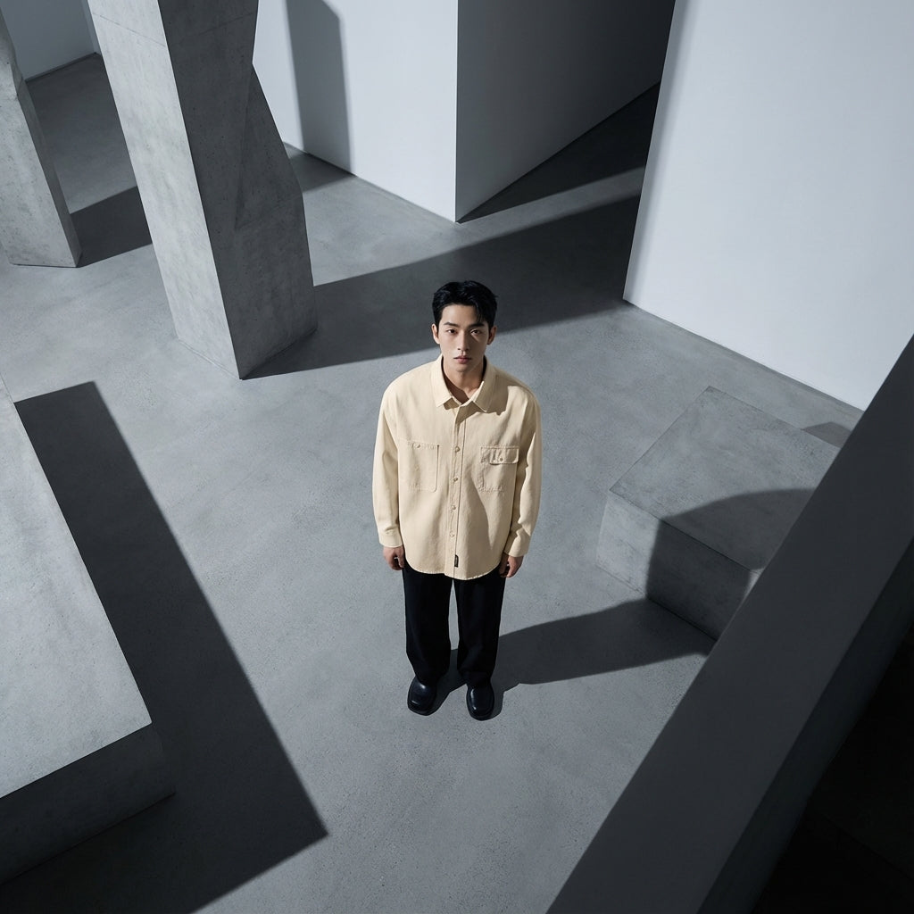 Dieses Hemd ist eine vielseitige und elegante Ergänzung für jede Kollektion, die den Komfort eines weiten Schnitts mit der diskreten Raffinesse der koreanischen Mode verbindet.