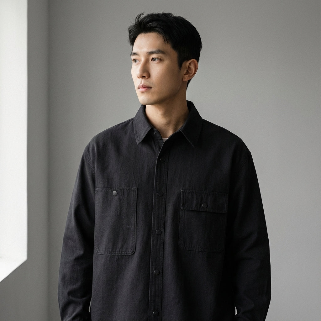 - Stil: Koreanische Mode, Streetwear, Lässig. Dieses Hemd verkörpert die minimalistische Eleganz und den Komfort des koreanischen Stils, ideal für einen urbanen und modernen Look.