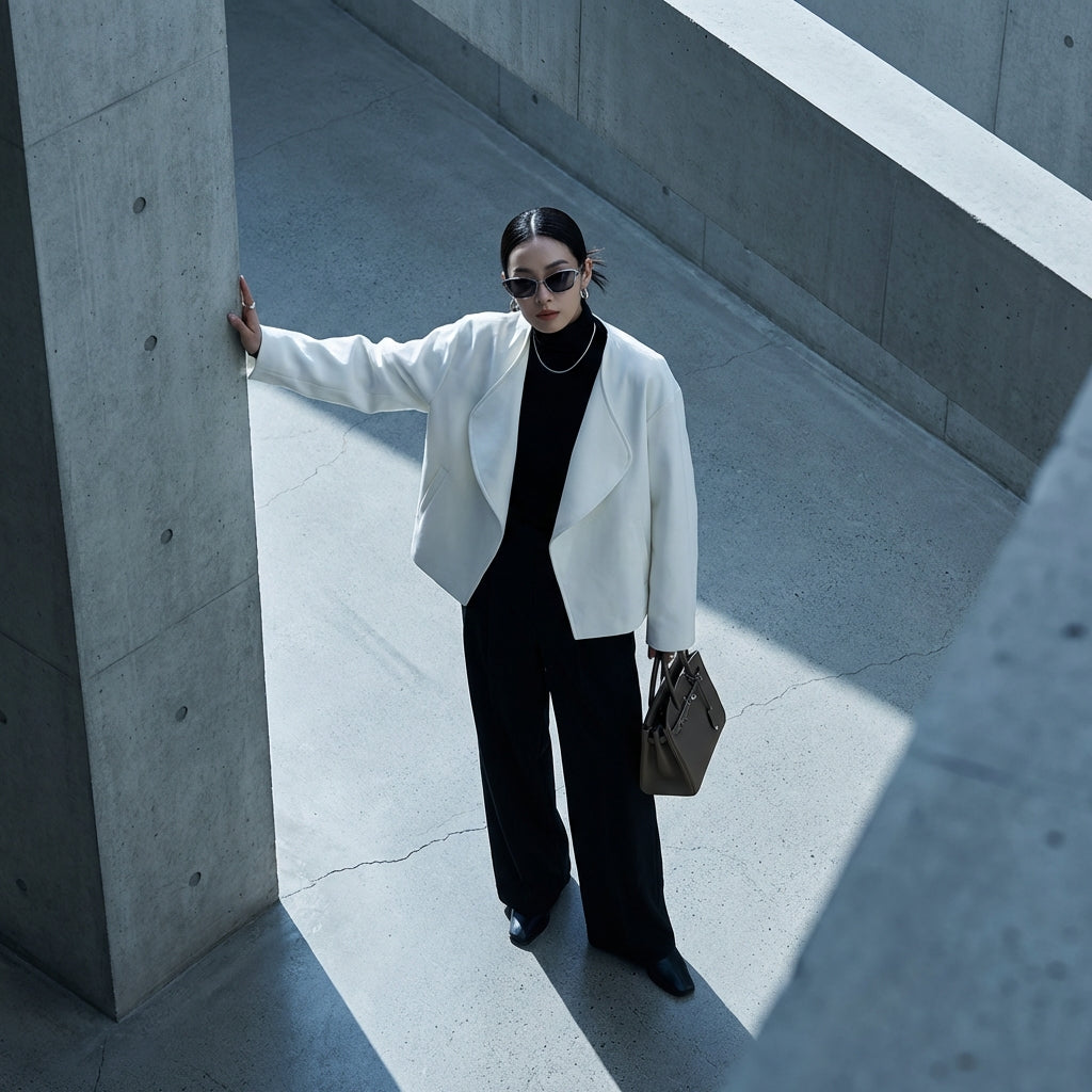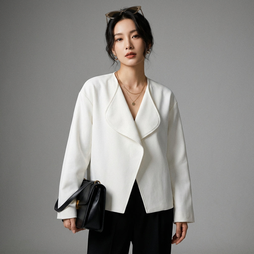 - Typ: Cropped, Oversize, Langarm. Ein kurzer und lockerer Schnitt mit Reverskragen für einen selbstbewussten und modernen Stil.