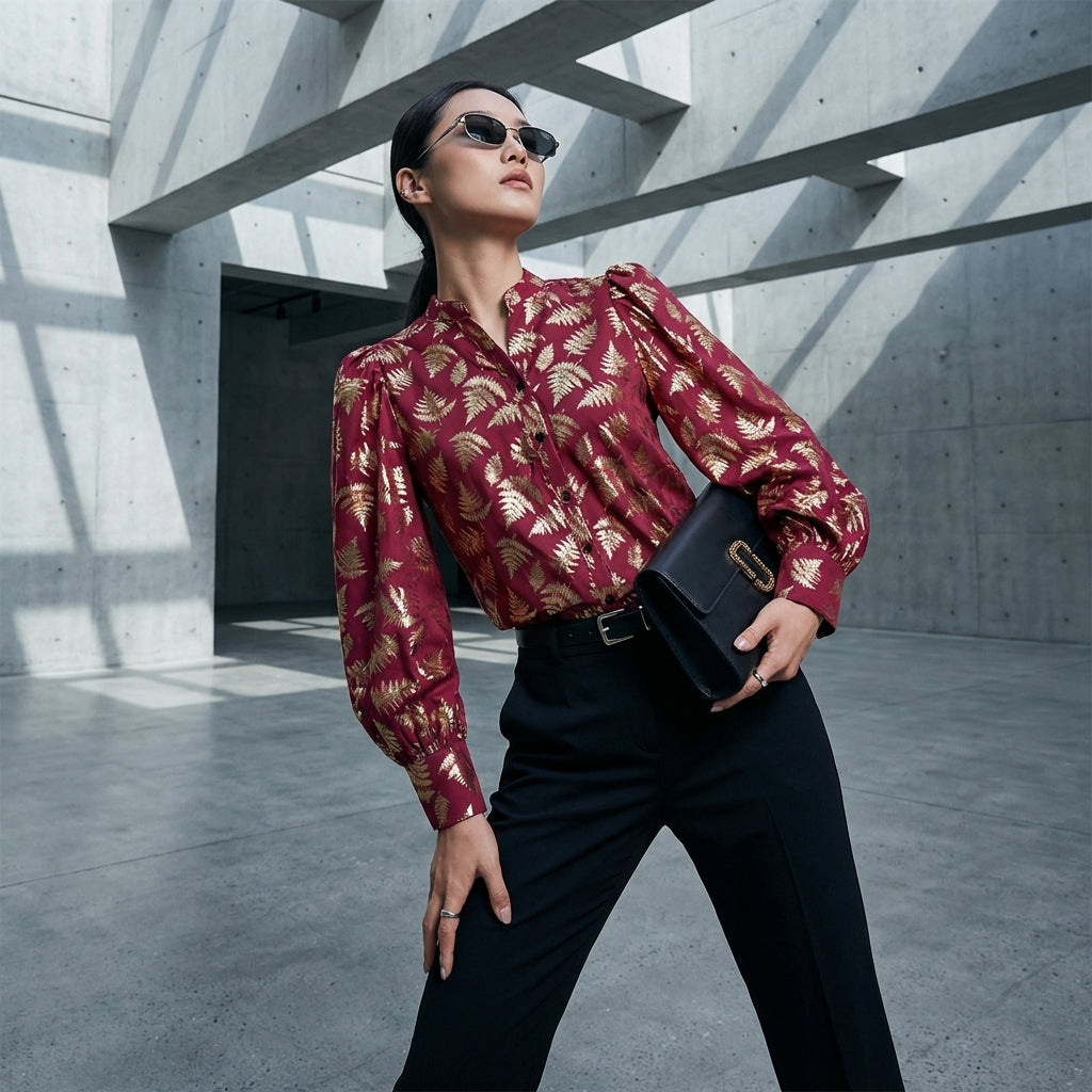 Kreieren Sie einen raffinierten Look mit unserem langärmeligen bedruckten Hemd, das mit einem gekerbten Reverskragen und einem Knopfverschluss ausgestattet ist. Sein einzigartiges Design und sein raffinierter Schnitt machen es zu einem Must-have für einen modernen und schicken Auftritt! ✨