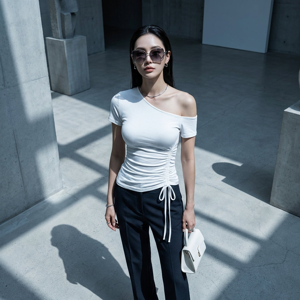 - Stil: Koreanische Mode, K-Fashion, Streetwear, Sexy, Trend. Dieses T-Shirt verkörpert den kühnen und modernen Geist der koreanischen Mode, perfekt für alle, die gerne auffallen.