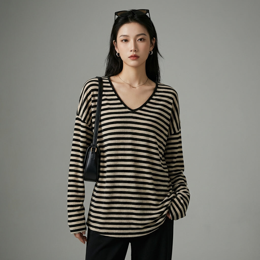 - Stil: Business Chic, Minimalistisch, K-Fashion. Dieser Pullover verkörpert moderne Eleganz und raffinierte Einfachheit, perfekt für ein professionelles Umfeld oder einen entspannten Ausflug.