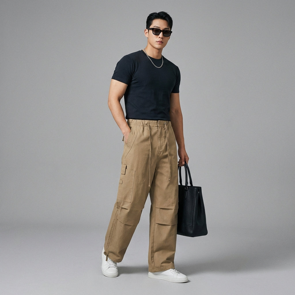 - Stil: Streetwear, K-Fashion, Urban. Diese Hose verkörpert den lässigen und trendigen Geist der koreanischen Mode, perfekt für einen modernen und selbstbewussten Look.