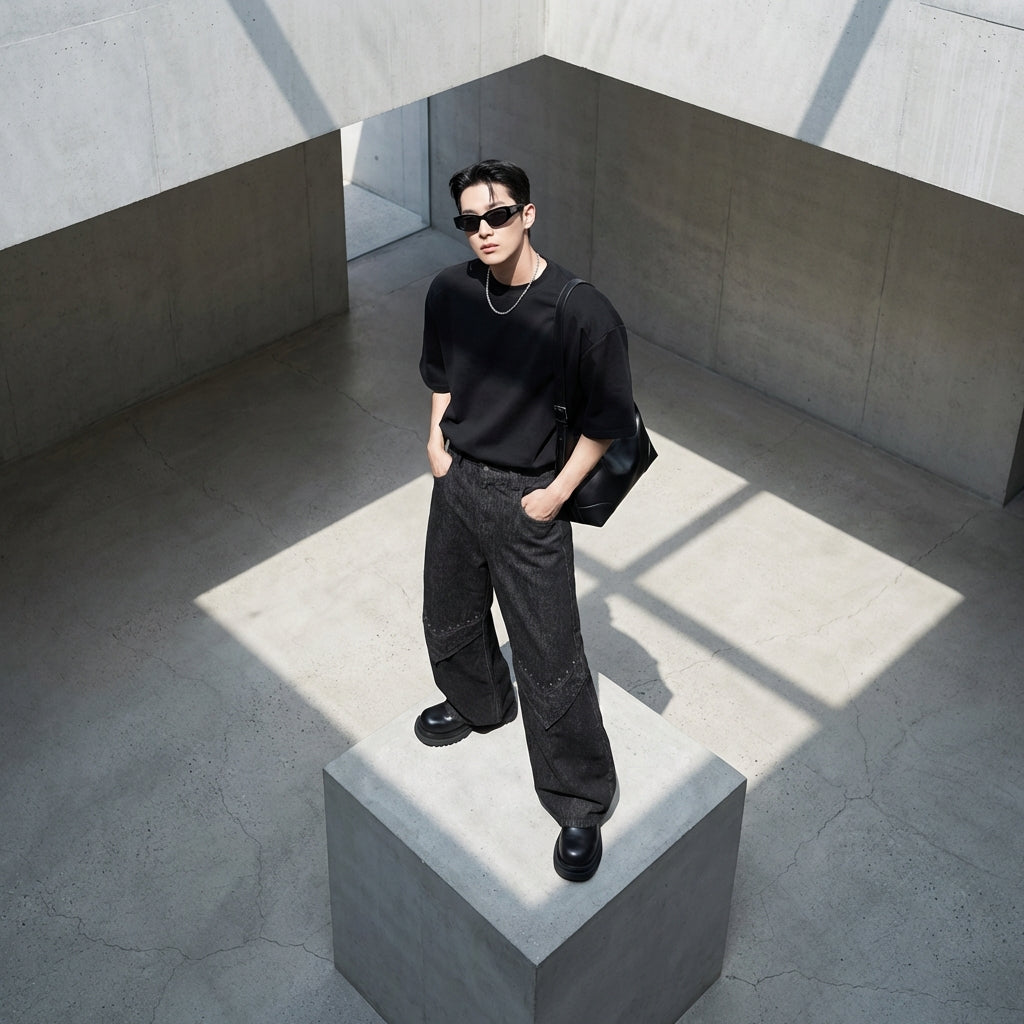 - Stil: Streetwear, K-Fashion, Urban. Diese Jeans verkörpert den lässigen und modernen Geist der koreanischen Mode und Streetwear.