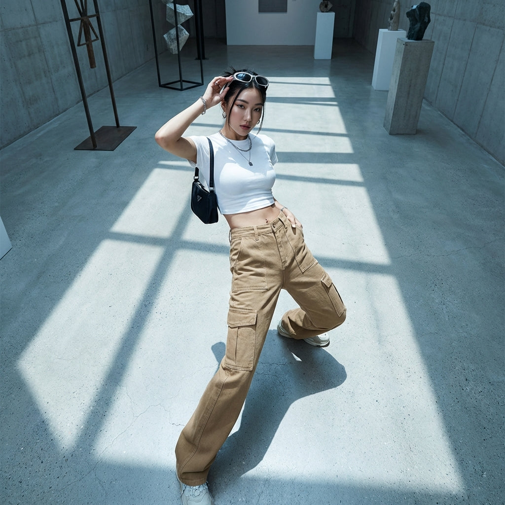 - Stil: Streetwear, Trendy, Urban. Diese Hose verkörpert den lässigen und stilvollen Geist der koreanischen Mode, perfekt für einen gewagten Look.